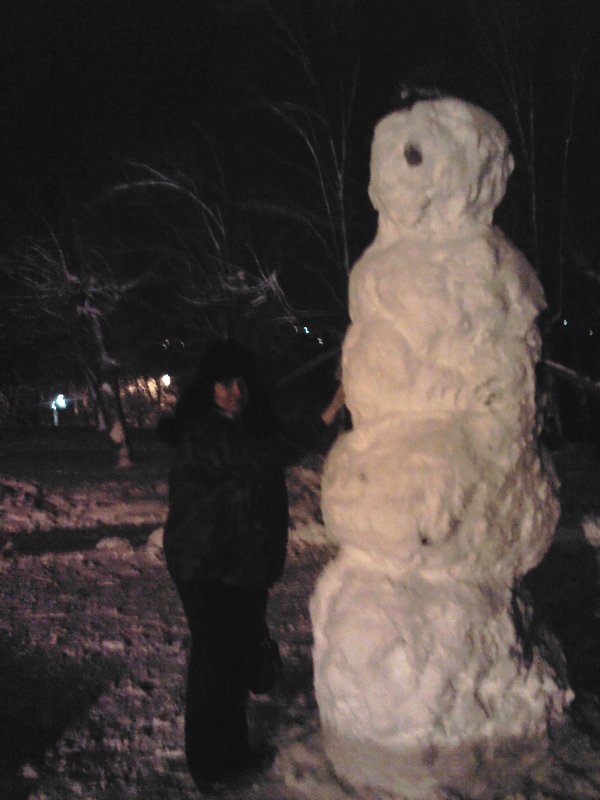В воскресенье лепили. Народ фотографировался у нашего с сыном творения - начали ещö до окончания строительства))) Мой рост - 1840 мм.