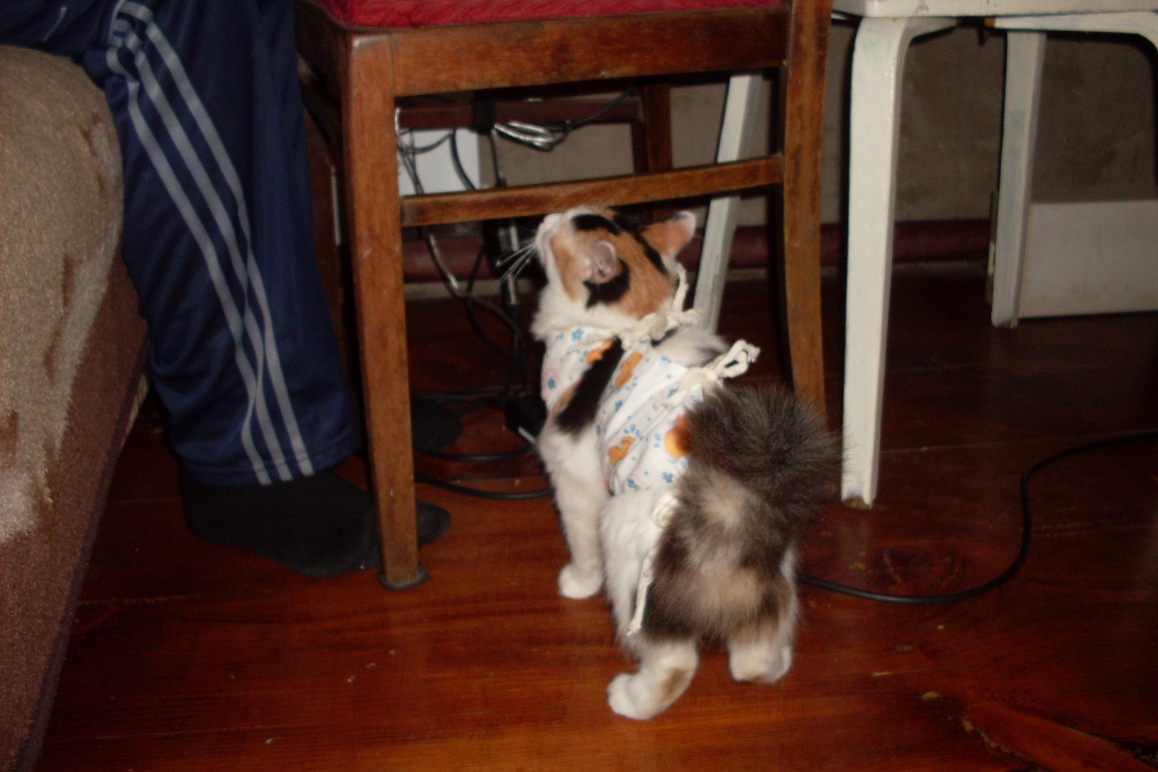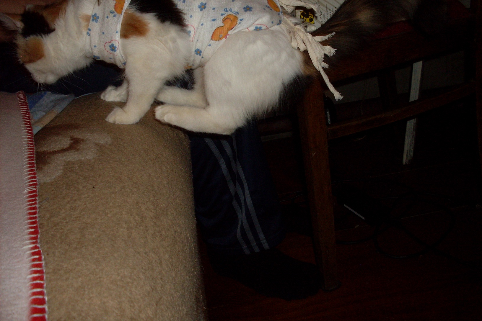 Приехали мы домой, она нас очень радостно встретила. Промыли шов,протерли, поменяли попону. Шов сухой и чистый. Сделали укол, настроение хорошее. Маруся оказалась очень умной, знает свое место, показали где она должна спать, там похоже весь день и продрыхла. Ничего не напакостила, в туалет ходит куда нужно. аппетит хороший, молоко за ушами свистело. Она оказалось наркоманом на ласки, не угомонная. Мне кажется она была домашней, слишком уж ручная.
