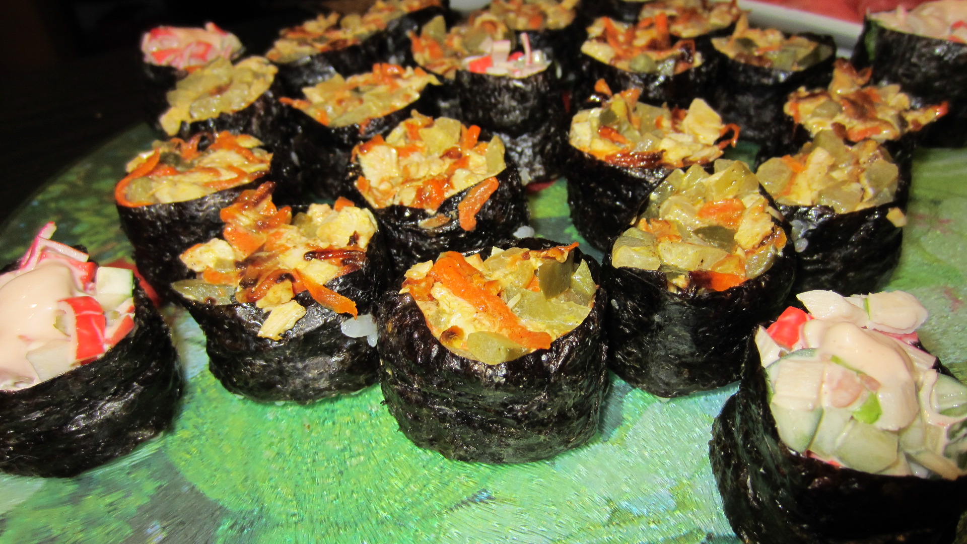 Вот, а пароли явки не сдала! Потому я и не поняла там суши/ролы, пришлось объедаться морепродуктами У мужа вот нежность любимые