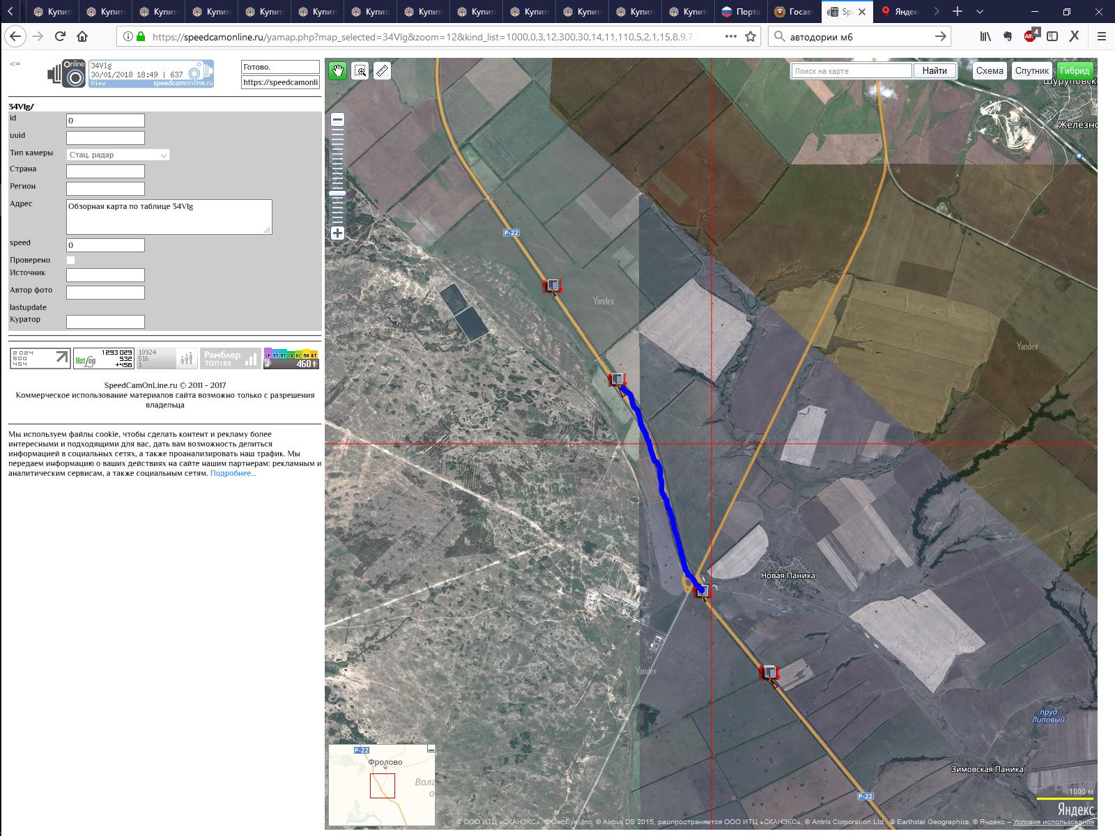 @max_power, кроме указанных вами по всей Р22 еще много участков контроля средней скорости. Спойлер: Вот некоторые из них Москва - Волгоград 28 Москва-Волгоград 652 км по 654 км Волгоград 2 2000 / Госплодопитомник 29 Москва-Волгоград 687 км по 689 км Волгоград 2 2000 / Черкессовский 30 Москва-Волгоград 700.7 км по 702 км Волгоград 2 1300 / Черкессовский 31 Москва-Волгоград 781 км по 782.7 Волгоград 2 1700 / Михайловка 32 Москва-Волгоград 786 км по 786.9 км Волгоград 2 900 46 Москва-Волгоград 790 км по 791 км Волгоград 2 1000 33 Москва-Волгоград 797 км по 798 км Волгоград 2 1000 34 Москва Волгоград 820 км - 823 км Волгоград 2 3000 / Гуляевка - Ветютнев / будет в районе этой точки 35 Москва Волгоград 834 км - 836 км Волгоград 2 2000 36 Москва-Волгоград 840 км - 842 км Волгоград 2 2000 37 Москва-Волгоград 847 км - 849.5 км Волгоград 2 2500 38 Москва Волгоград 878 км -879 км Волгоград 2 1000 39 Москва Волгоград 884.5 км - 886 км Волгоград 2 1500 40 москва волгоград 903.7 км - 906.5 км Волгоград 2 2800 41 москва волгоград 915 км-917 км Волгоград 2 2000 42 Москва -Волгоград 933.6 км по 938.3 км Волгоград 4 4700 43 Москва-Волгоград 948.3 км - 950 км Волгоград 4 1700 44 Москва-Волгоград 959.8 км - 960.5 км Волгоград 4 700 Отсюда.