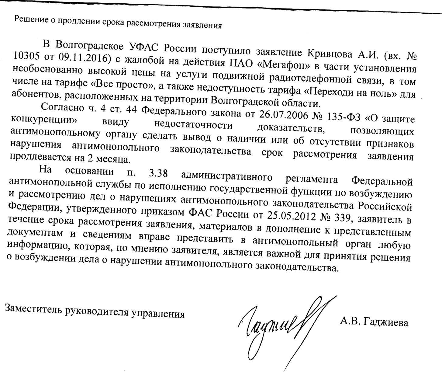 нет, Вас НЕ послали. это стандартная писулька. они должны получить отписку от другой стороны. в свою очередь - можете им принести еще какие нить доказательства вины Мегафона до начала разбирательства. по опыту - это может затянутся. хорошо еще тому кто зимой пишет потому что отпуска у их руководства летом. насчет 135 ФЗ и 2х месяцев.. ну напишут 1 мес, а потом продлят. тут суды тянут резину хз сколько.. Теле2 забыл. было токо что 1.8 посек, щас 1.5 помин, вся шайка в сборе. А вообще Мегафон не бережет себя - только что штраф в миллион отбашляли. жаль что государству. платили бы штрафы людям - уважали бы клиентов. PS в Иркутске видимо очень бедные люди живут , там тарифы вообще невысокие и в Москве нищеброды какие то