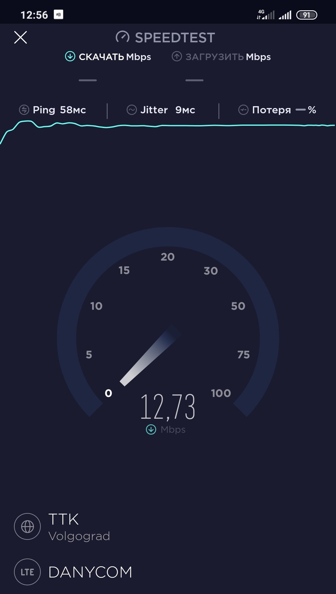 Прошёлся выше по Новороссийской к ул Двинской. Видно там другая бс и скорости совсем другие. Правда и частота не 1800, а 2600 МГц (20 + 20 МГц)