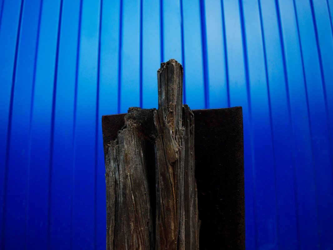 В наклонном кадре про 30 градусов ещё один прикол «зашит», по крайней мере, у меня такая ассоциация возникла: ярко-синее небо и 30 градусов наводят на мысль, что это лето и жарища. Степь, жаворонки, ковыль, полынь, пыль и т.д. Тем более, что в тот день в том месте реально было пекло. Но это всё уже выдумки, попытки объяснить «идею», которой не было во время съёмки. Но и 30 без ничего мне всё равно нравится. Текстура, форма и цвет очень уж красявые. С наклоном добавляется инфа и заодно теряются детали, при этом кадр из чисто визуального становится «смысловым»