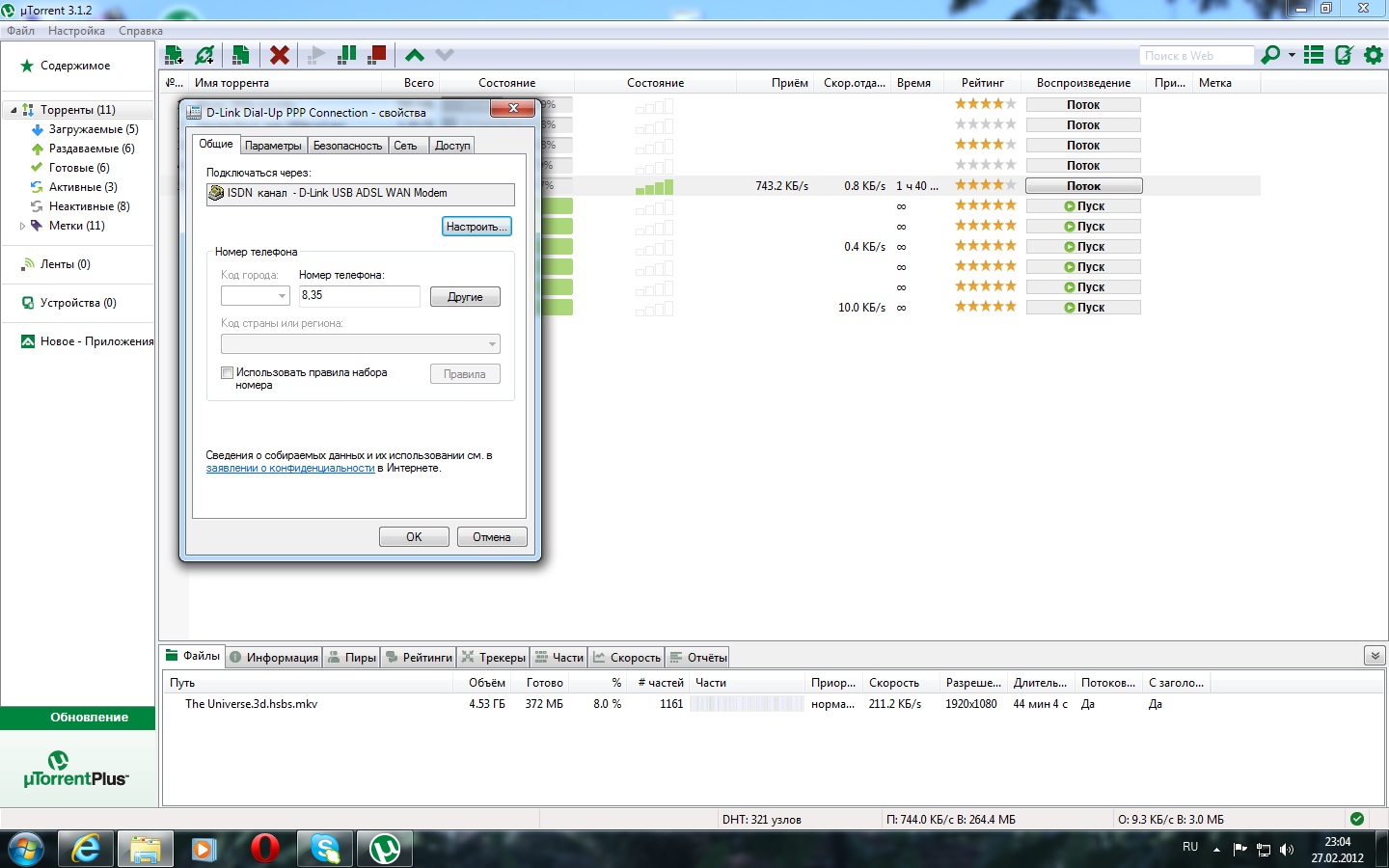 Отключил в торренте всё что связано с uTp. Правда слова протокол не нашёл. То же самое. Минуты 2 качает, а потом скорость потихоньку падает и интернет пропадает полностью. ---------- Сообщение добавлено 26.02.2012 22:43 ---------- Я прошу прощения: А где (как) прописать в модеме принудительно гуглевские днс-сервера. 8.8.8.8 и 8.8.4.4? Вообще в настройки модема не могу войти. Где они?
