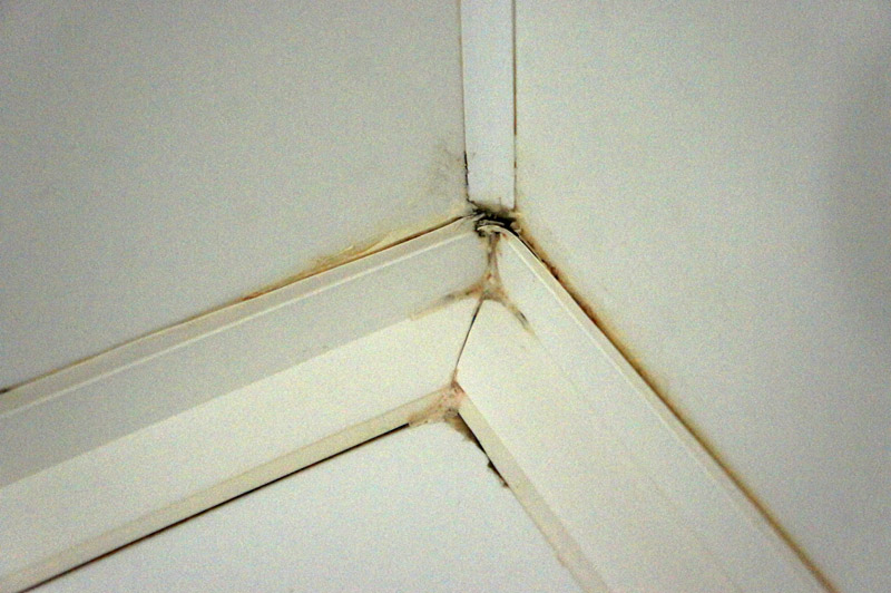 Это неизбежность. Вариант один - раз в два года переклеивать новый уголок на чистый силикон...ну и делать хорошую вентиляцию