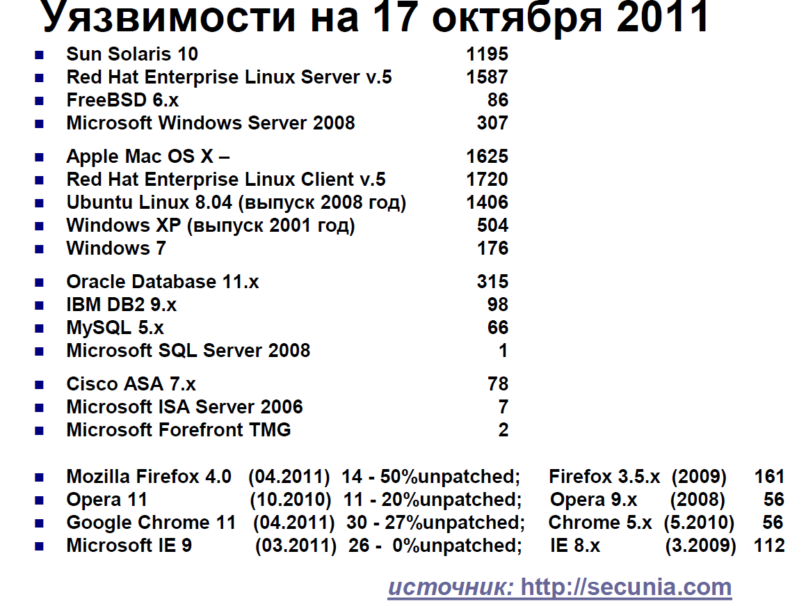 UAC к примеру одмины отключают ---------- Сообщение добавлено 24.04.2012 06:53 ---------- Сразу после публикации доклада упомянутые в нем дистрибьюторы Linux выпустили совместное заявление, в котором утверждалось, что доклад Forrester Research вводит в заблуждение, особенно потому, что в нем "все уязвимости ошибочно рассматриваются как равнозначные, независимо от риска, который возникает вследствие этих уязвимостей". Server 2003 - 38% уязвимостей помечены как критические, RHEL - 10% http://citforum.ru/security/articles/win_lin/tabl1.html http://citforum.ru/security/articles/win_lin/tabl2.html ---------- Сообщение добавлено 24.04.2012 06:57 ---------- 68% web-сайтов используют web-сервер Apache и только 21% web-сайтов используют Microsoft IIS. Если проблемы с безопасностью возникают из-за того, что злоумышленники нацеливаются на самую обширную инсталляционную базу, то должно наблюдаться больше червей, вирусов и прочих вредоносных программ, нацеленных на Apache и те операционные системы, под управлением которых он функционирует, чем на Windows и IIS. Более того, должно регистрироваться больше атак против Apache, чем против IIS, так как из приведенного выше рассуждения следует, что проблема заключается в количествах, а не в уязвимостях. Сетевой червь Code Red, который использовал переполнение буфера в сервисе IIS для получения контроля над web-серверами, заразил около 300 тысяч серверов, и его распространение прекратилось лишь потому, что это было предусмотрено в программном коде данного червя. Netcraft Web Survey for September 2004 — http://news.netcraft.com/archives/2004/09/index.html В рейтинге Netcraft среди 50 web-сайтов, лидирующих по длительности непрерывной работы (промежуток времени между перезагрузками), оказалось 47, использующих Apache2. Ни на одном из этих 50 web-сайтов не использовались ни Windows, ни Microsoft IIS ---------- Сообщение добавлено 24.04.2012 07:03 ---------- Для компрометации свежеустановленной, "непропатченной" версии Windows XP после подключения компьютера к Интернету требуется в среднем 16 минут — меньше, чем время, необходимое данной ОС для загрузки и инсталляции программных коррекций, которые позволят защитить этот компьютер. Unpatched PC "Survival Time" Just 16 Minutes, Gregg Keizer, TechWeb News http://www.internetweek.com/breakingNews/showArticle.jhtml?articleID=29106061 ---------- Сообщение добавлено 24.04.2012 07:04 ---------- Невозможно объяснить, почему считается, что по такому показателю, как среднее время от момента обнаружения бреши до выпуска соответствующей программной коррекции, Microsoft превосходит какую-либо из конкурирующих операционных систем, не говоря уже о Linux. Компании Microsoft потребовалось семь месяцев (!), чтобы устранить одну из самых серьезных уязвимостей в системе защиты (Microsoft Security Bulletin MS04-007 ASN.1 Vulnerability, компания eEye Digital Security сообщила об этой задержке в информационном бюллетене AD20040210). А ведь еще имеются бреши, о которых Microsoft открыто заявляет, что они никогда не будут ликвидированы. В бюллетене Microsoft Security Bulletin MS03-010 об уязвимости Denial Of Service (отказ в обслуживании) в Windows NT говорится, что эта уязвимость никогда не будет устранена. Позднее компания Microsoft заявила, что не будут устраняться уязвимости в Internet Explorer для всех версий операционных систем, выпущенных ранее Windows XP.