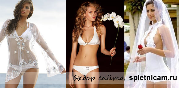 А если планируете второй день на Турбазе/даче какой отмечать, то и правда можно белый купальник специальный купить. И мужу- черные плавки и галстук- бабочка И заставить всех согласных гостей в подобном дресс-коде прийти. Жестокая, но веселая свадьба.