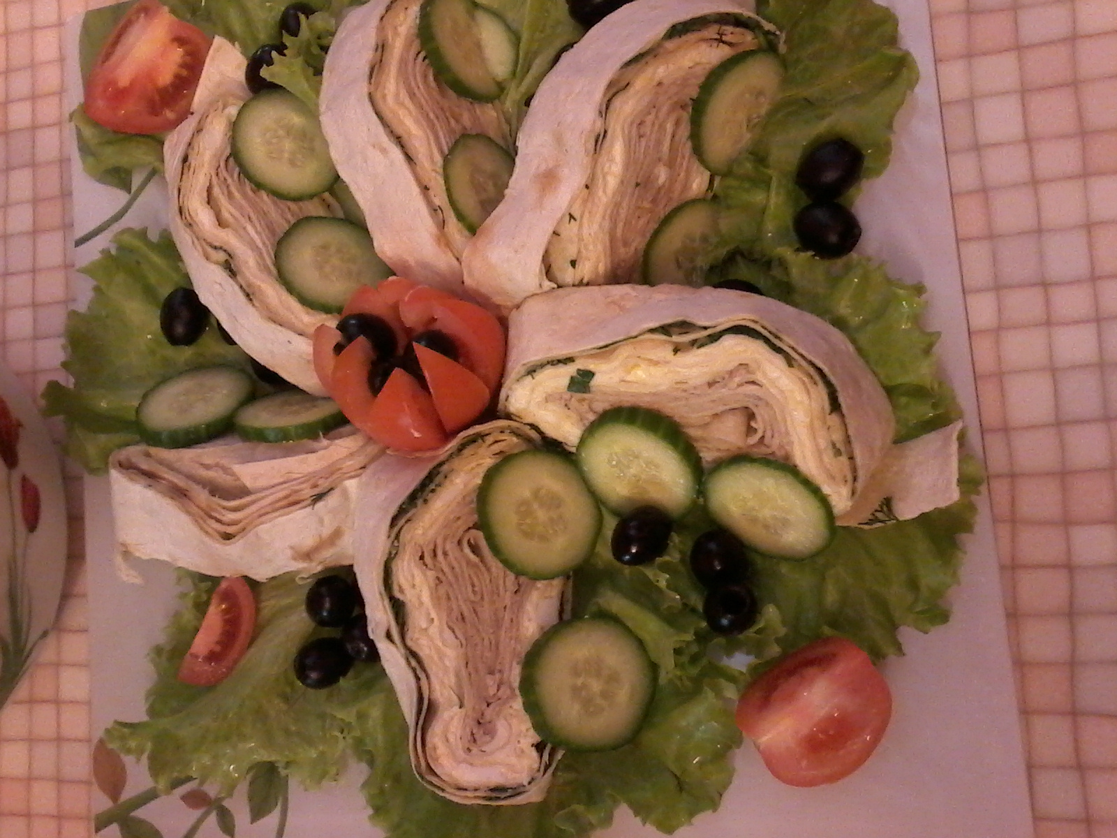есть у женщин одна особенность - они "чувствуют", только я собрался за изменой к тёте Лейле ехать как вечером меня ожидал вкусный и красивый ужин: салатик с жареными шампиньонами, копчёным мяском, гранатами и ананасом и рулетики-машинки с печенью трески (которую проводник привёз), чесноком и сыром...ну и армянский естесственно Мой ужин вчерашний: