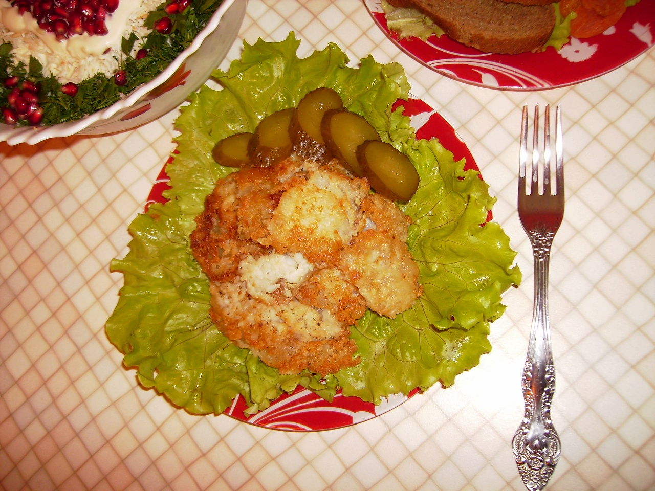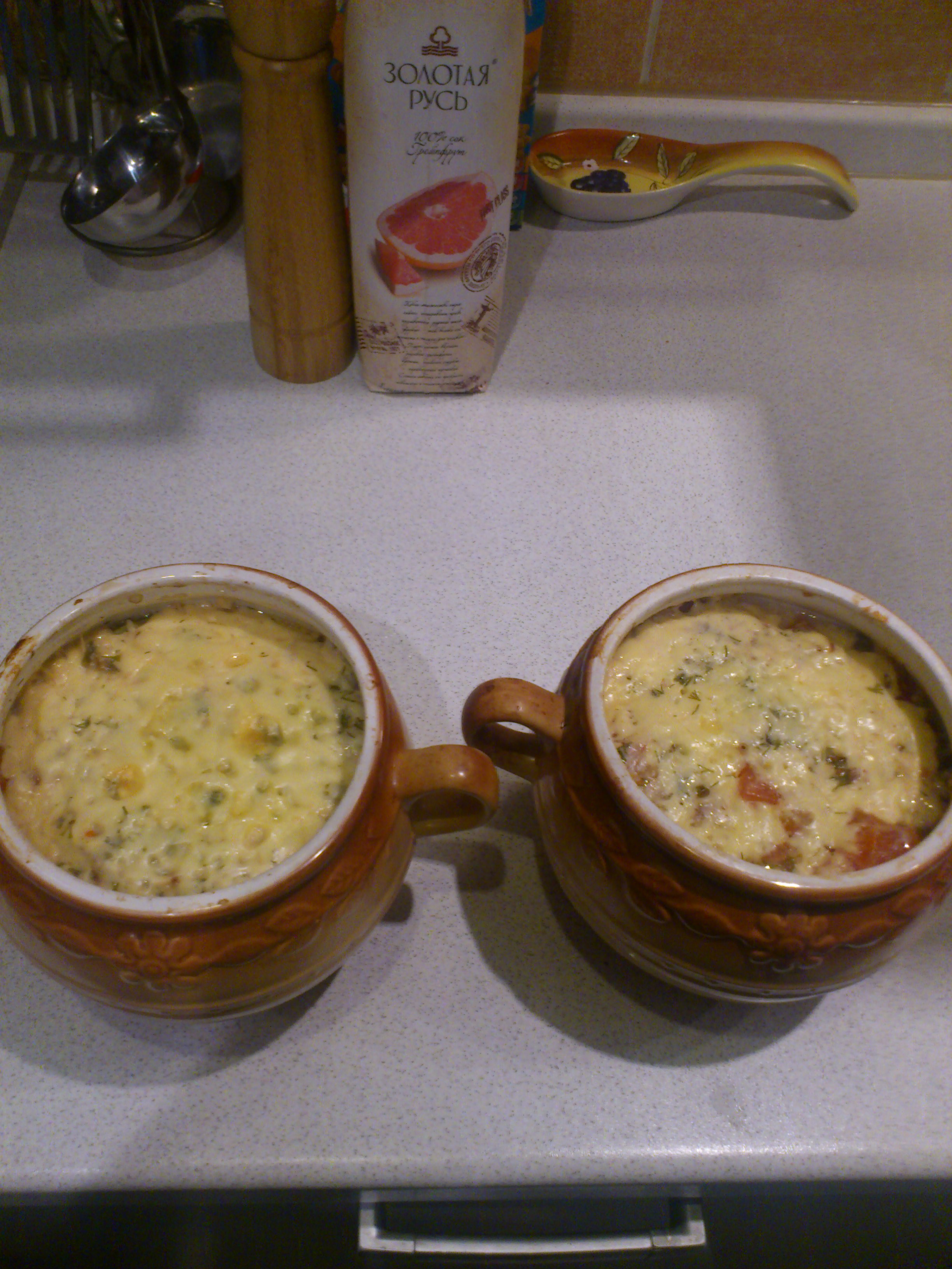 в этот раз курица отдельно (голени зажаренные и потом запеченные). но часто делаю гороховое пюре (после варки взбиваю в блендере до эластичного состояния). добавляю жареный лук и зажаренный до хруста бекон. грудинку или другую копченость. которая имеется