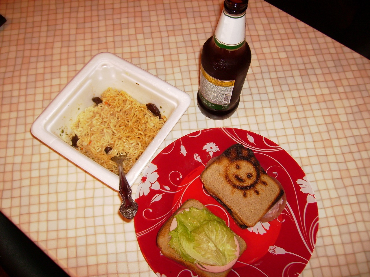 а вот мои ужины за последнее время: 1) ужин в стиле "мой парень - гопник с вторчермета" анаком тирияки даже с кусочками мяса (правда вкусно, не ожидал), бутер на гренке с горчицей и зельцем и классический пролетарский бутер с докторской ну и напиток соответствующий (гадость неимоверная)