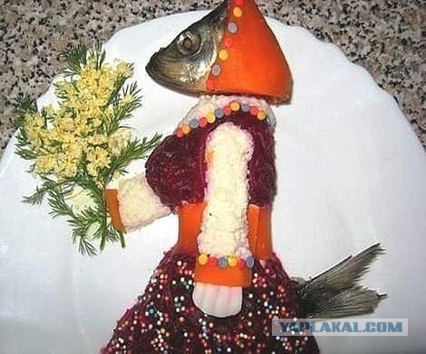 ХЗ - вроде, ботва мимозы - из укропа, а цвятки - из тёртых желтков, ну, как раньше салат Мимоза принято было в определённых кругах украшать. oleg25, фубля обыкновенная, чего у меня всё спрашиваете? http://moto.kiev.ua/trid/perls/1162393539473