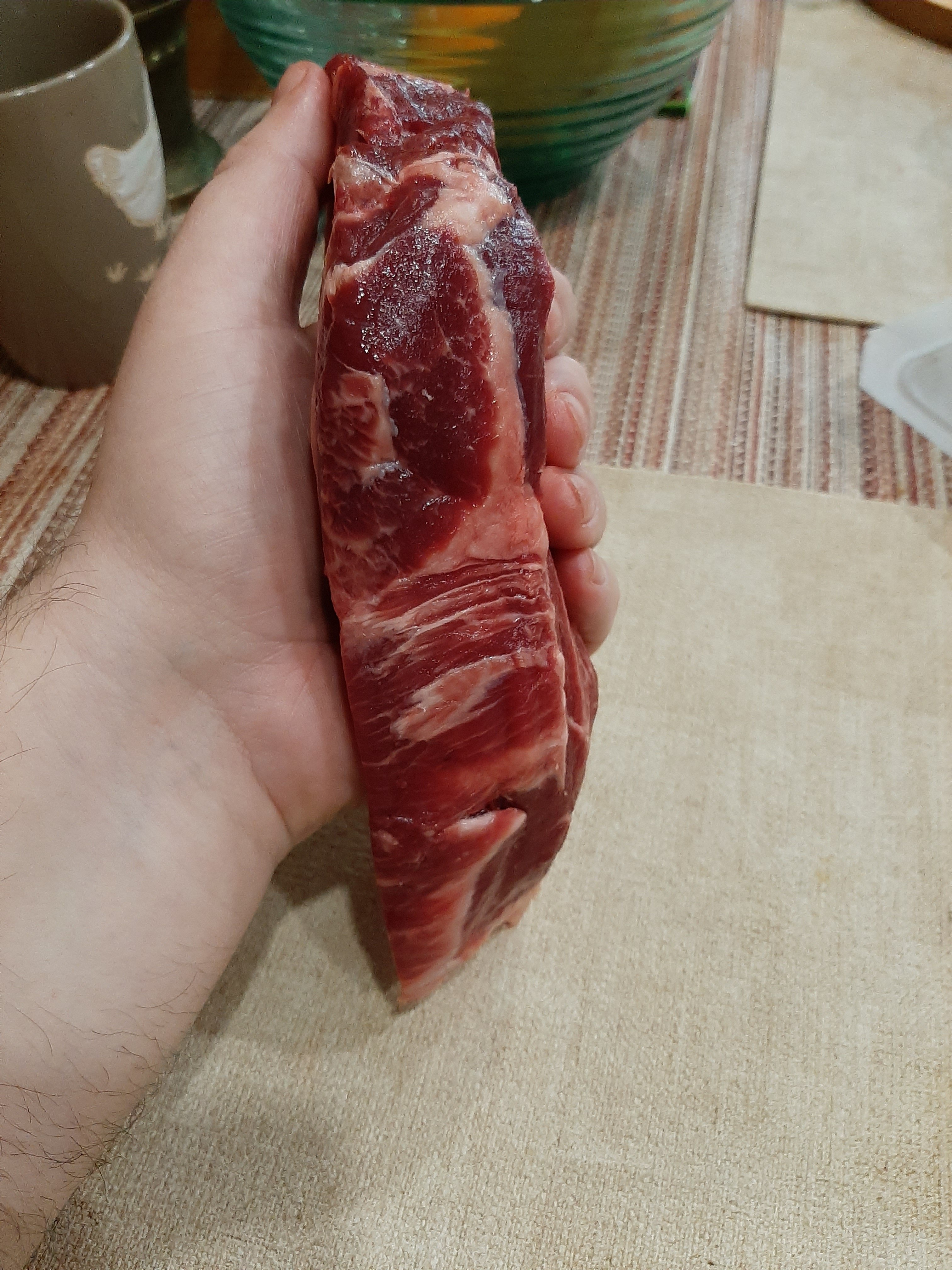 Почём она сейчас? Последние разы задрали ценник до жути. 850 и не торгуются, по знакомству со скрипом за 750 отдавали, только если ещё мякоти возьмешь или ещё чего. Плюс заказывать нужно её, разбирают быстро. Там её 1.2-1.4 кило с туши получается всего лишь. На "мраморные" стейки перешёл. Пробовал Аргентину выдержанную брать в Метро, не зашла, слишком мягкая, все-таки пожевать мяса хочется.