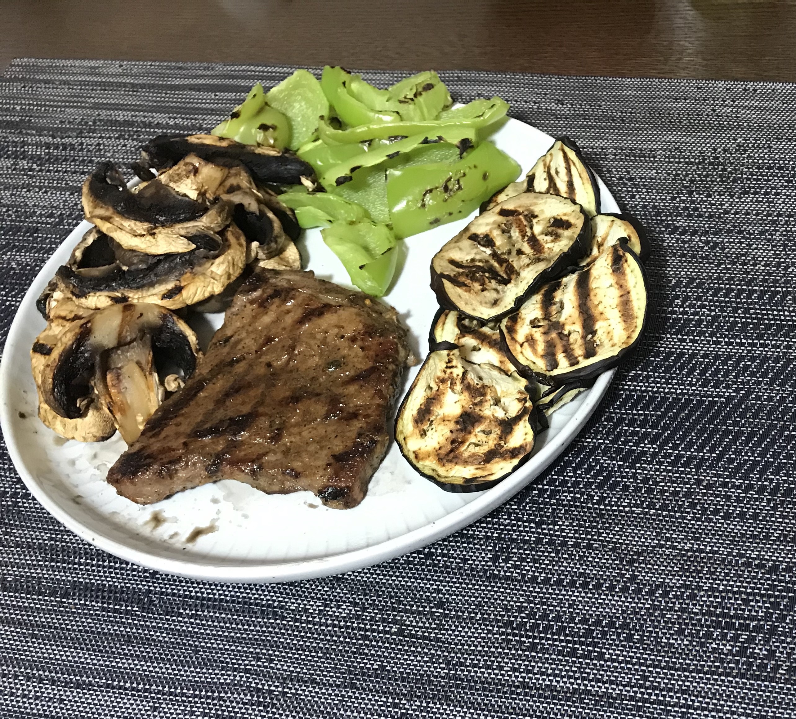Говяжий филет, обжаренный в высокотемпературном гриле и, затем, доведённый до 58 градусов в духовке С запечёным картофелем с сыром с голубой плесенью и салатами. С наступающим, друзья!