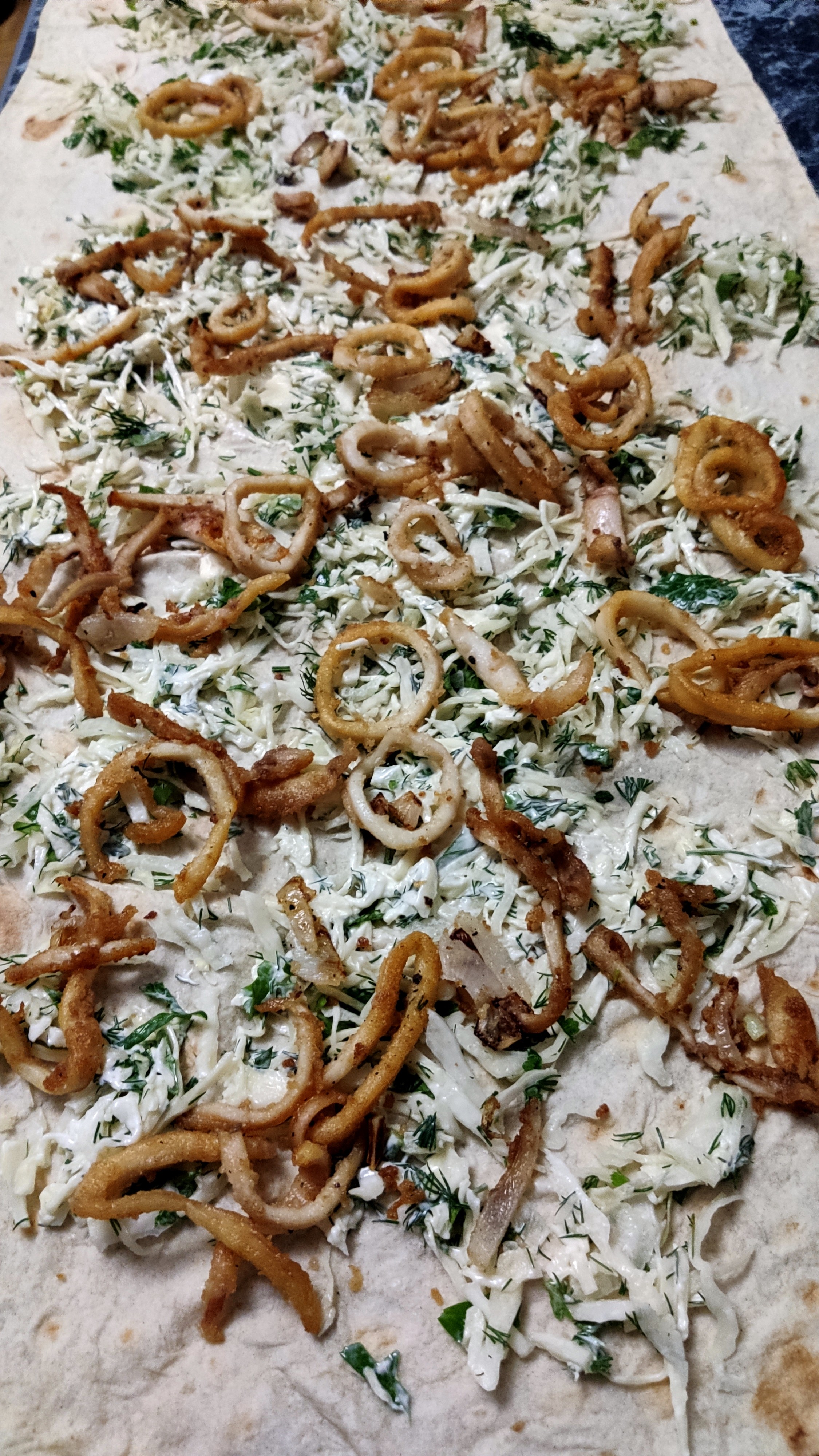 Сегодня на ярмарке видел на Возрождения. ну когда то сам ловил с плит с территории ЗКО Здравствуйте робята ! Для тех кто еще не ужинал. Решил вот поделиться рецептом. Дело в том что на днях делал типа шаурмы с мясом утки и грибами жареными+зелень. Сегодня же пришла в голову безумная мысль совместить не сочетаемое. И так .Мелко капусту-лук- туда же в меру майонез -зелень. Кальмар 3 минуты отварить -почистить и пожарить кольцами\полосками в панировке .Посолить-поперчить . Все это на лаваш и скрутить. Неожидано вкусно оказалось ! Пробуйте !Не сложно и быстро.