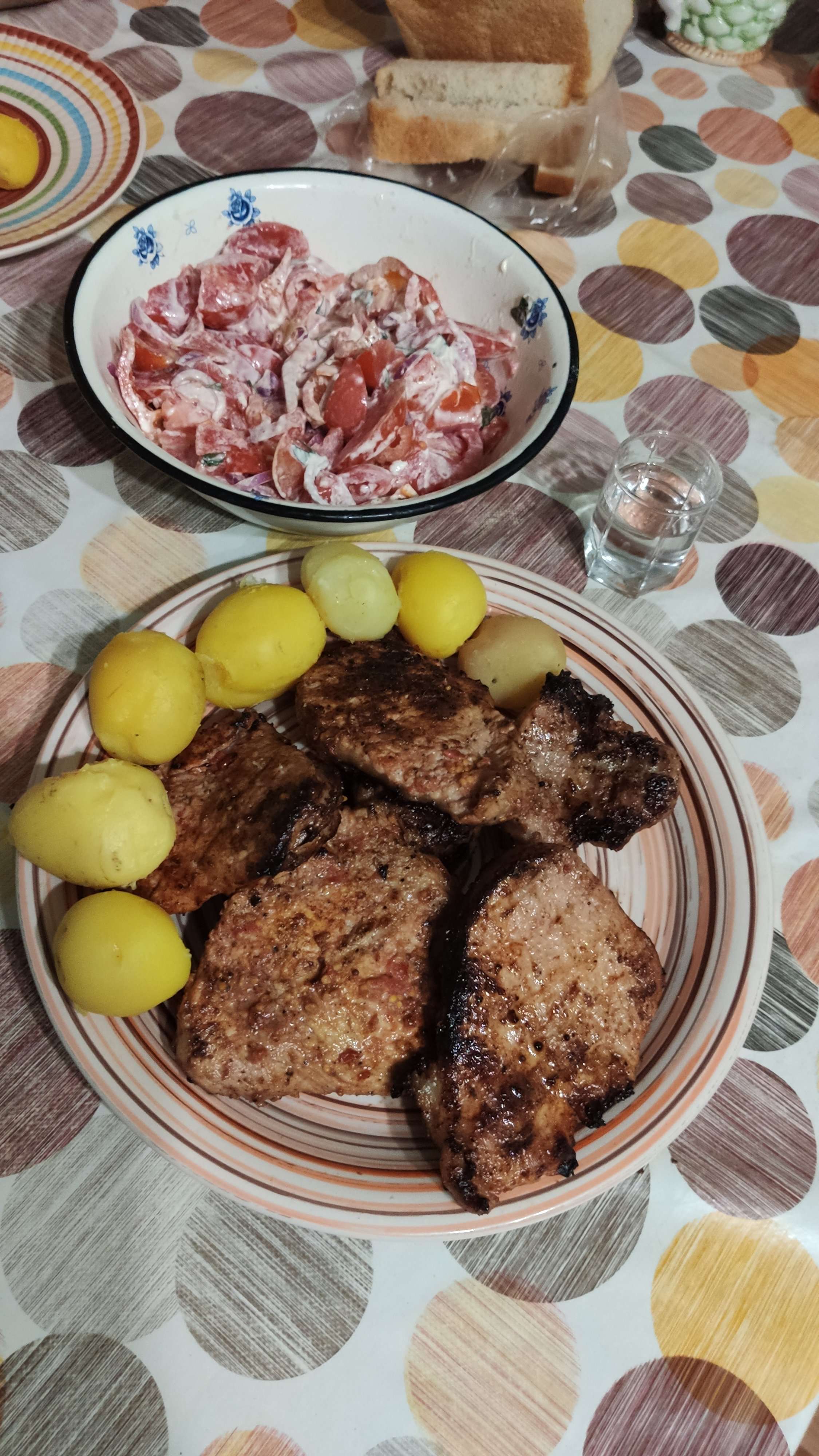 А как же селёдочка к такой картошечке,...ммм, и случком, это первое что наум пришло, ну а бифштекс конечно зачетный, но к нему бы соусы хорошие и салат, ну там вроде есть из помидор.