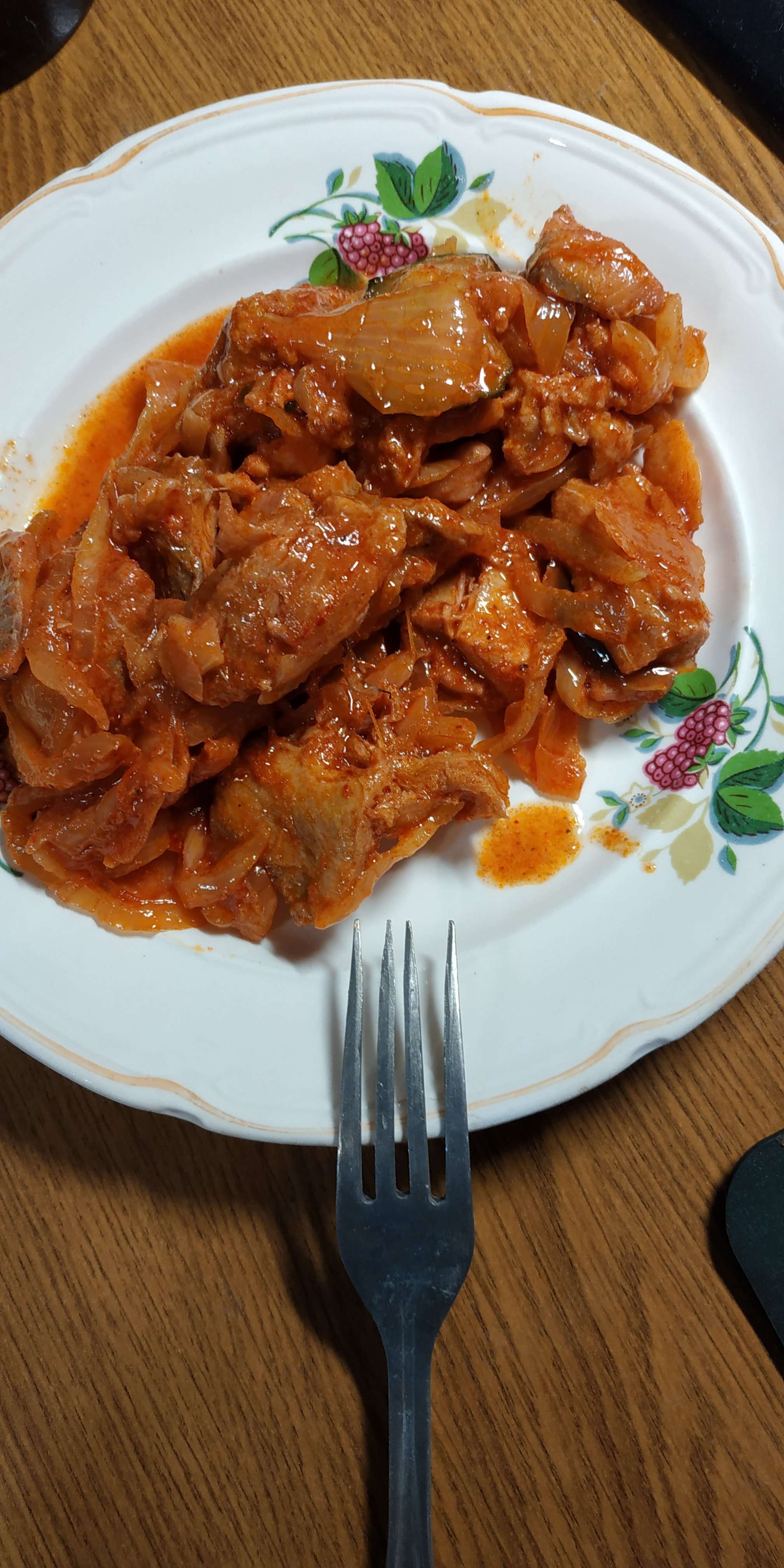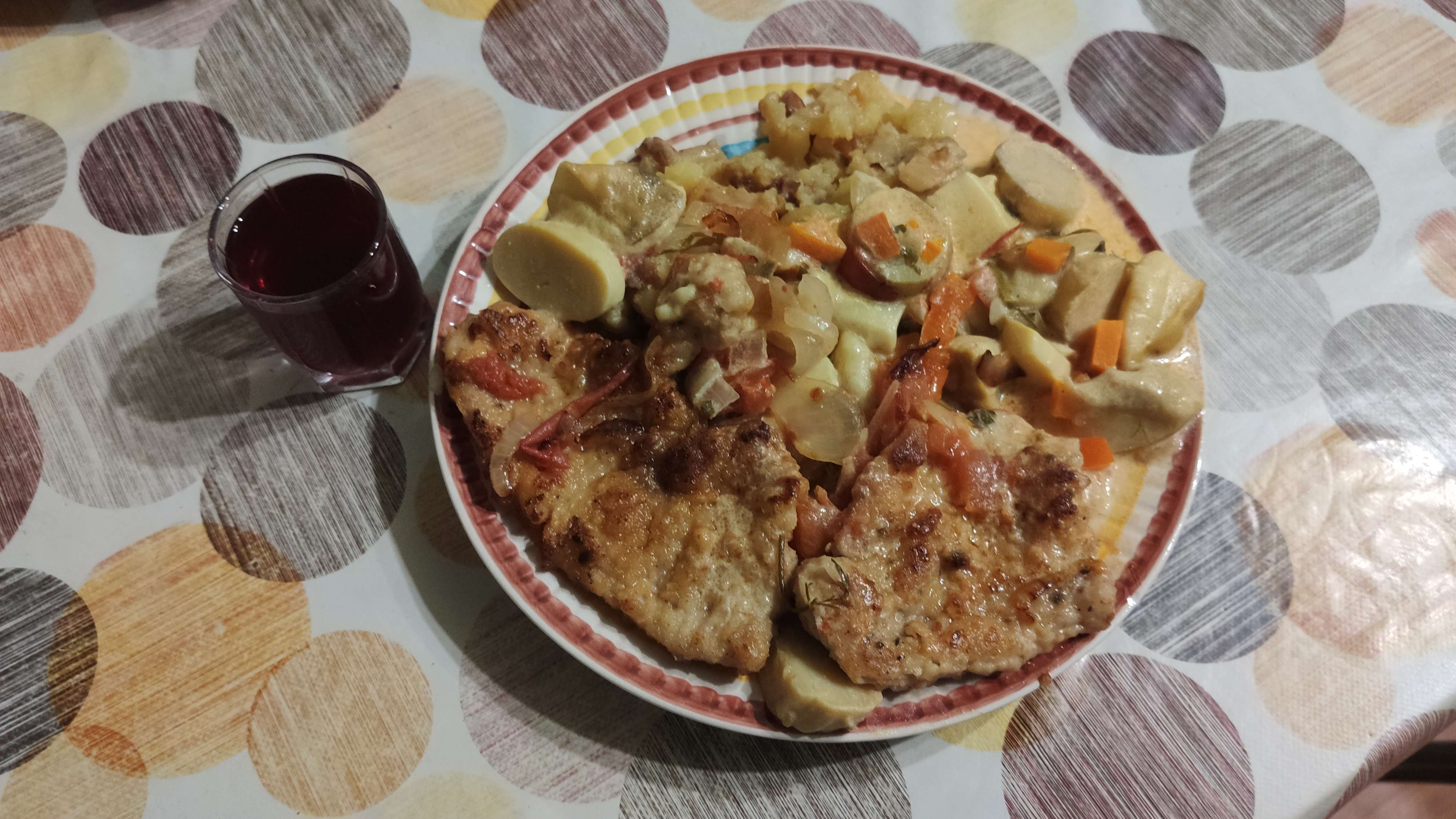Рассказываю рецепт. Грибы белопольские тушёные с овощами в сметане. Свиная отбивная. Ну и терновку пора пробовать