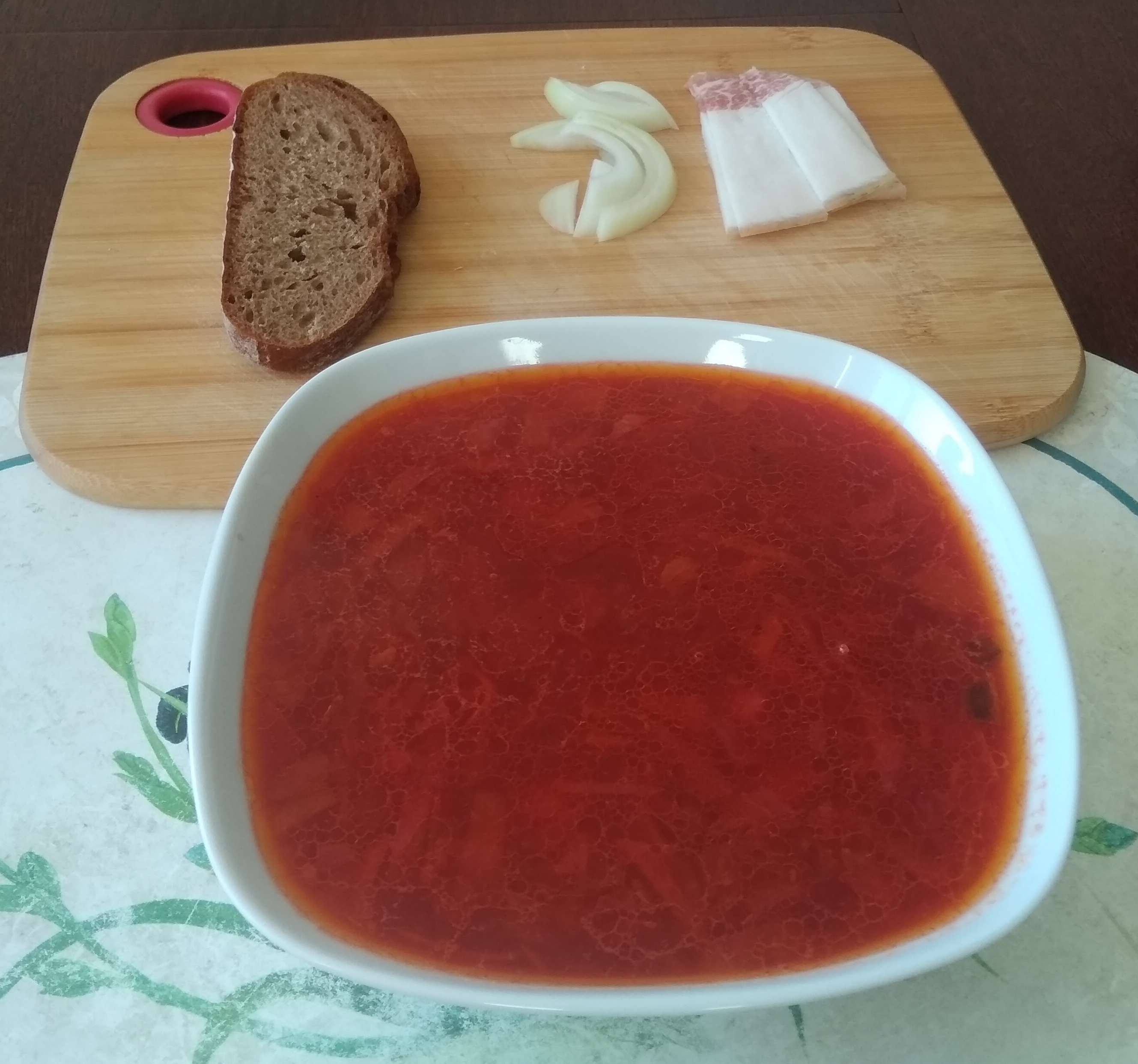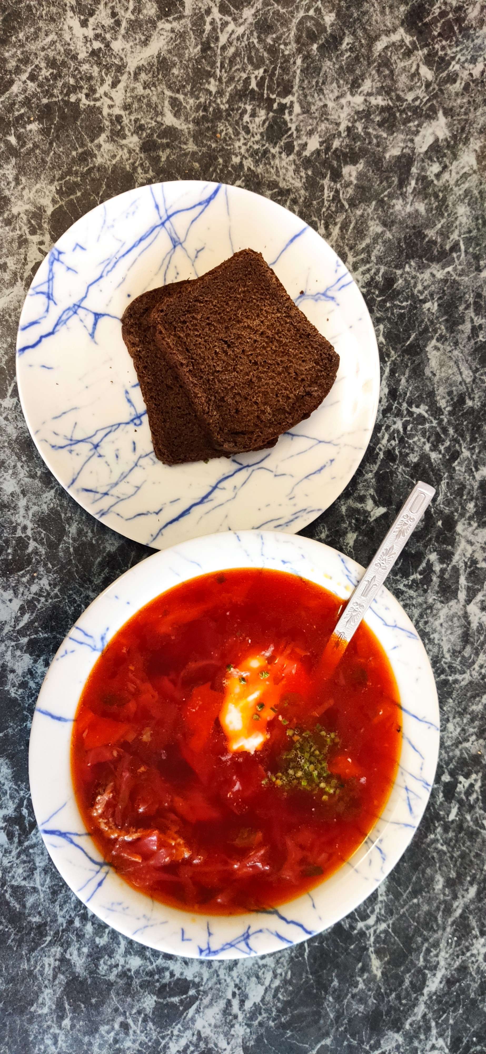 Думаю таки да . Вот такой сегодня у меня . На степной говядине. Рецепт простой сварил борщ потом photoshop добавил насыщенности цвета и всё красиво. А если серьёзно то чтобы был такой красный борщ когда на тихом огне пассируешь овощи, в пассеровке мелко нарезанная кубиками свекла . И вот когда уже осталось минут 7-10 до готовности пассеровки ещё натираю туда одну свеколку на тёрке и чуток ещё тушишь. А вот когда пассеровку выливаешь в кастрюлю с борщом, надо перемешать и немедленно выключить огонь ни в коем случае больше не кипятить кастрюлю. Насыпать зелень в кастрюлю накрыть крышкой сверху ещё полотенце и дать настояться минут 10. Приятного аппетита