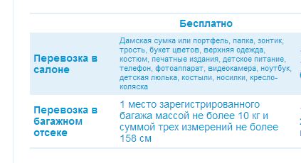 это откуда информация? и как понимать эту таблицу? Я лично перевозил бесплатно рюкзак весом 8 кг, причем и в салоне тоже.