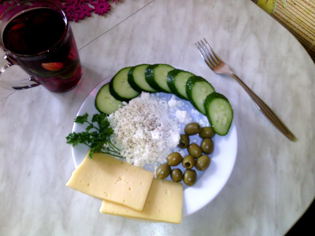 Li_l, Скажи, что это творог, а то не видно же. Петрушка со своей грядки на балконе. И, кстати, замечу для всех, что я против мешать оливки с огурцами. Да, в Турции мы так питаемся по необходимости, но лучше, чтобы было что то одно.