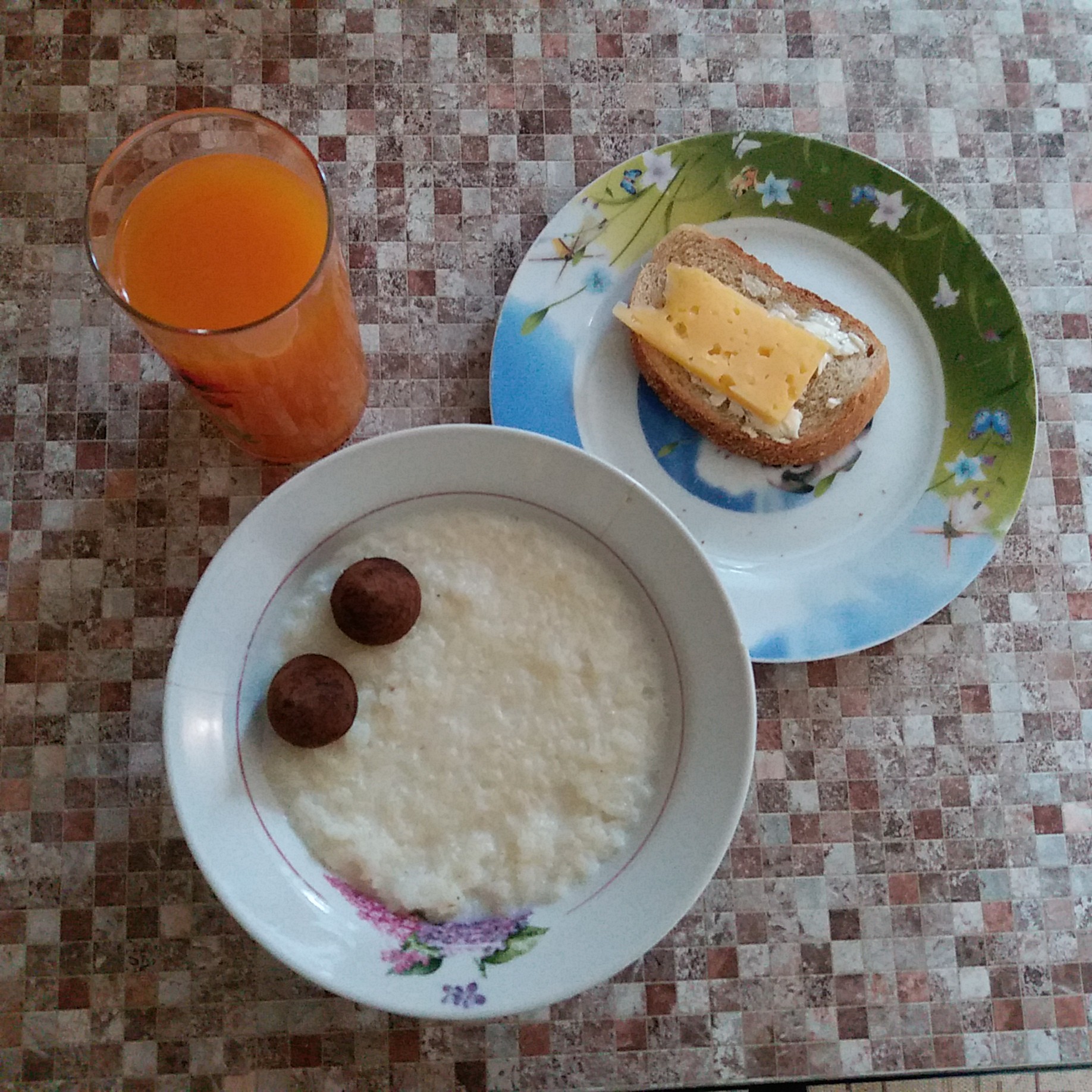А у нас который год всё стандарт. Каша, в основном гречка/пшено/рис, иногда и другие бывают, например овсянке или четыре злака. Ставлю или в мультиварке крупы, или варю Нордик или Myllyn Paras. В кашу мёд. Муж ещё иногда добавляет орехи, цукаты. Палочкой выручалочкой, если каша не приготовлена, стоят мюсли Bruggen Gourmet/Crispy AXA/Everyday. Бутерброды, батон сливочное масло сыр. Кофе зерновой, с молоком/без. Я к кофе люблю кусочек горького шоколада. По выходным бутерброды делаю горячие, в духовке, иногда под сыр добавляю помидор.