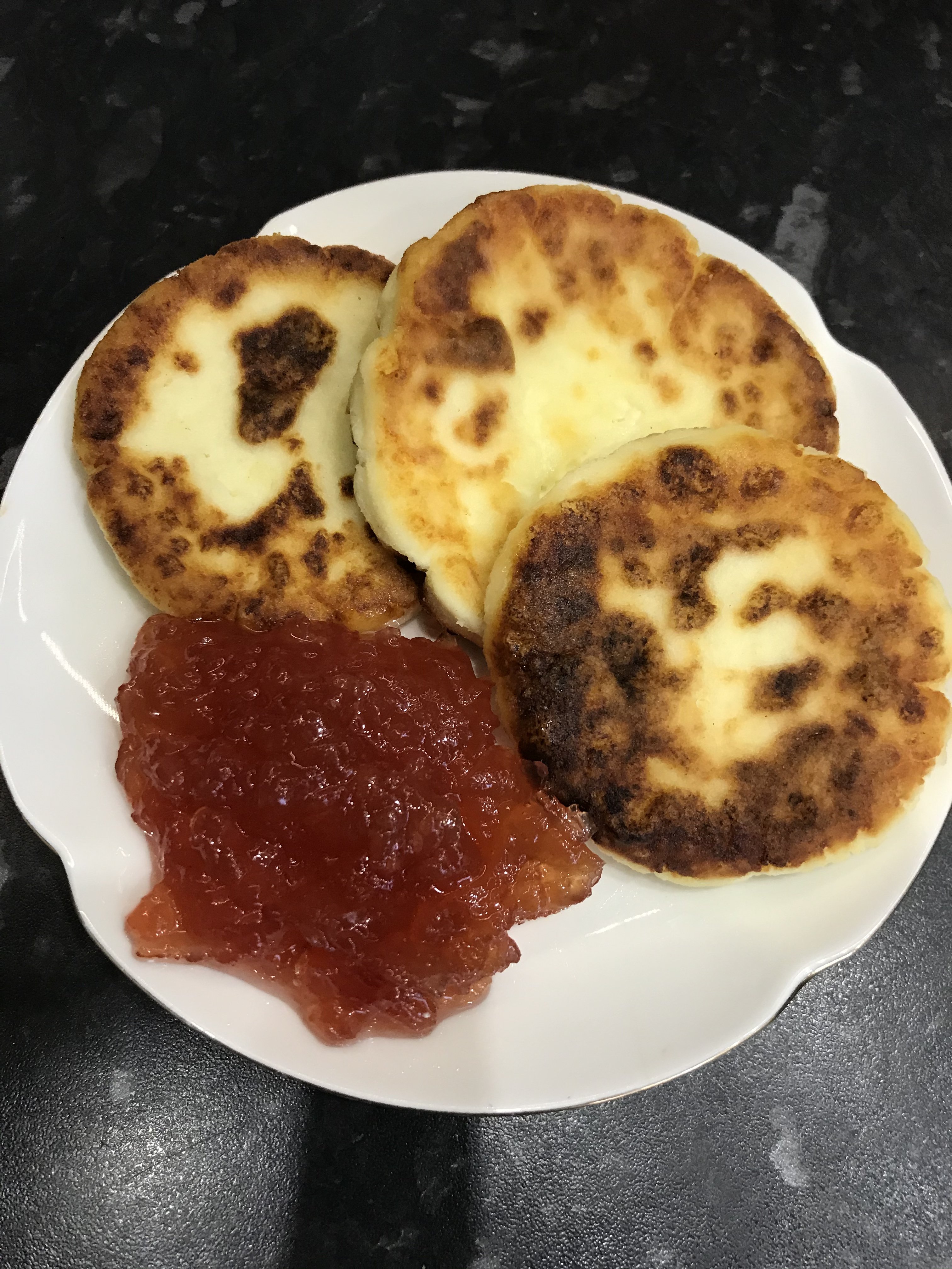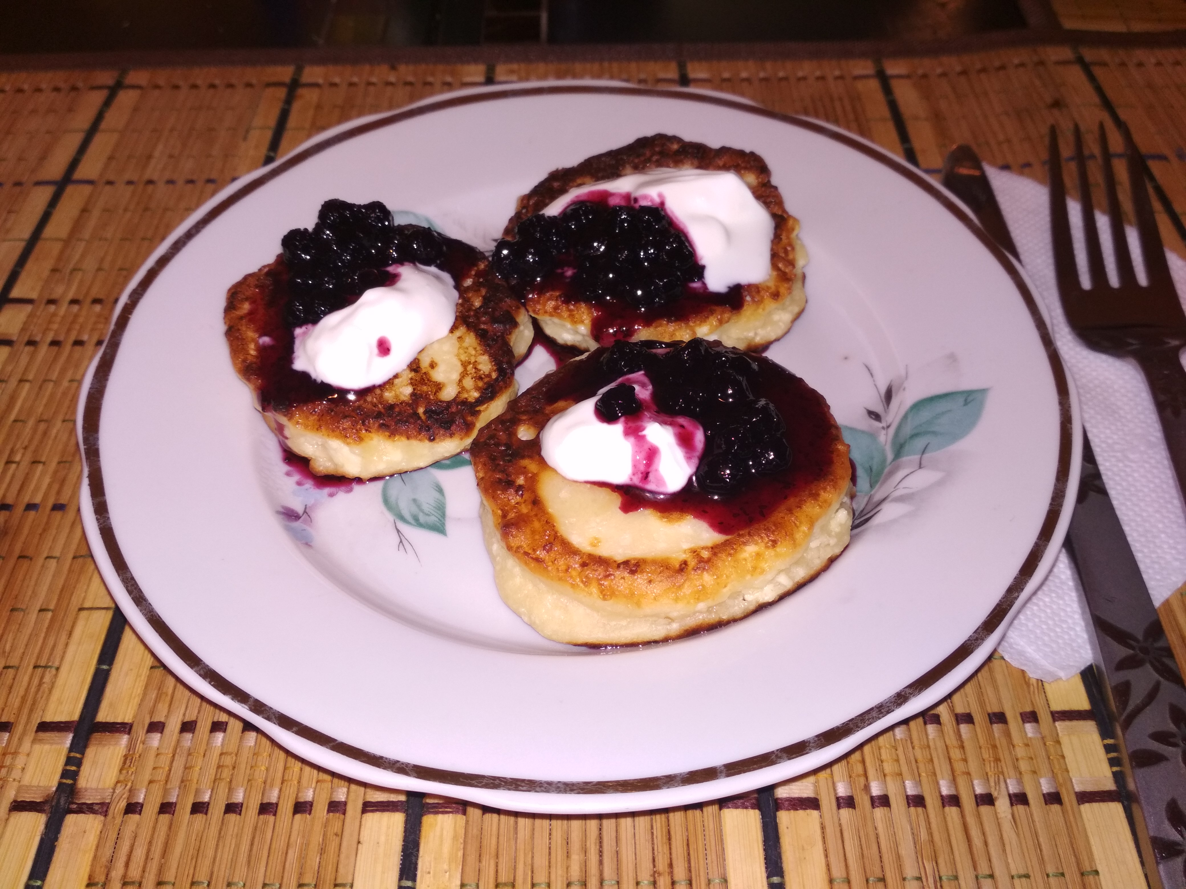 На днях готовила сырники, захотелось именно с черничным вареньем) Сейчас в дороге, приготовила закуску из лаваша с крабовыми палочками, где-нибудь кофе зацепим и позавтракаем)