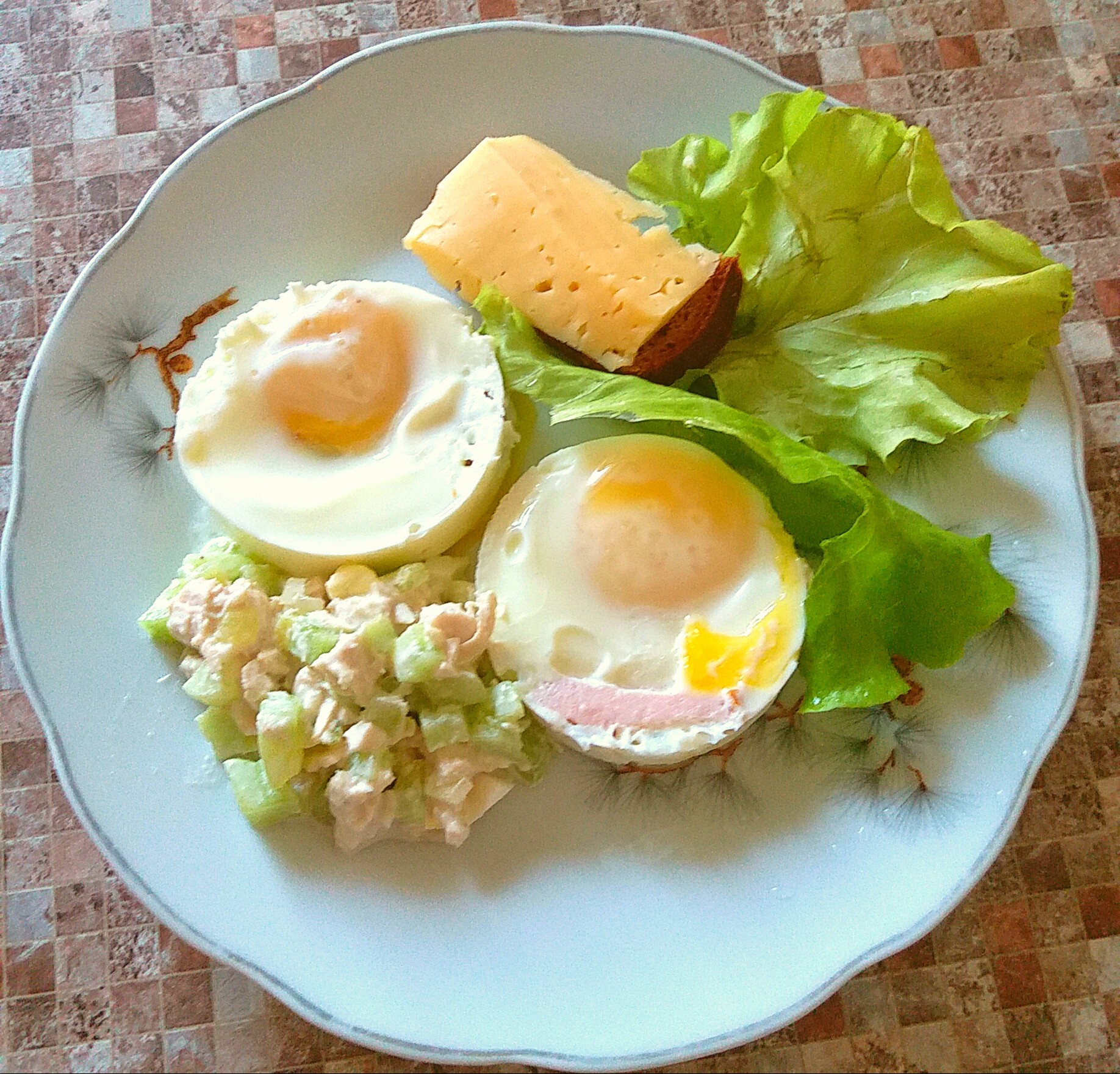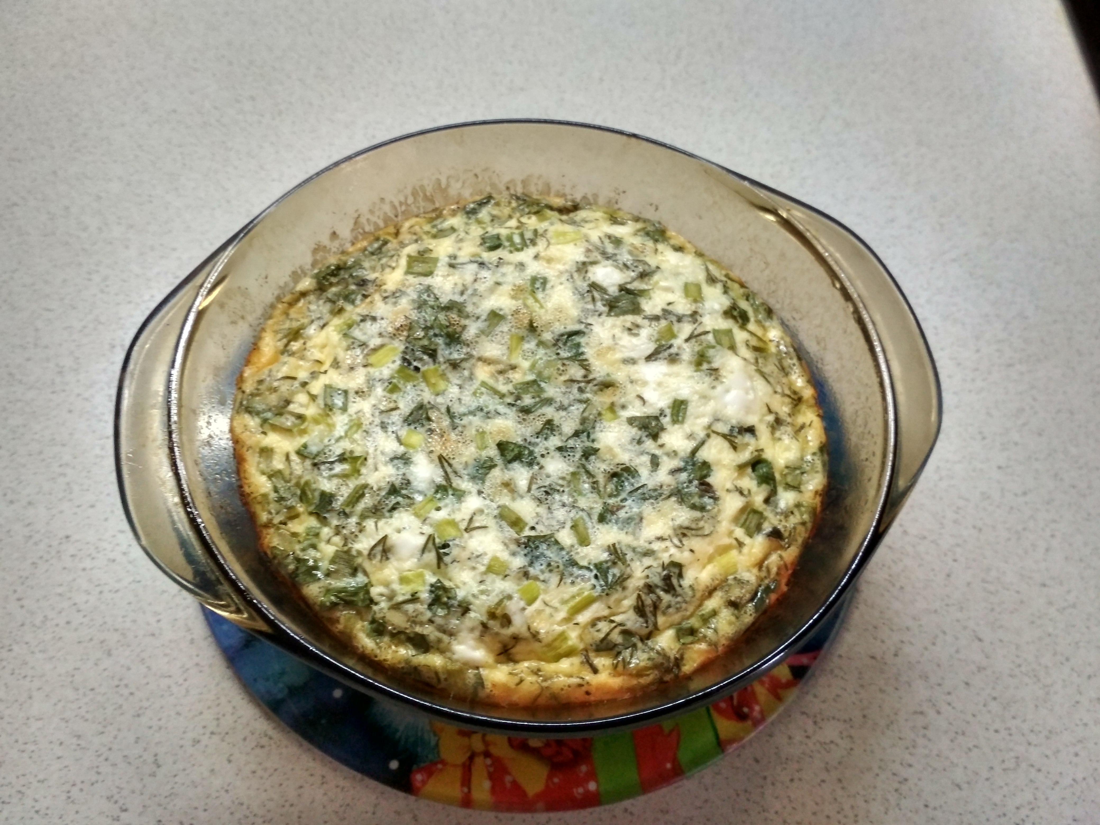 Блюдо без названия)) Готовила из остатков творога (100 гр), чуть меньше половины упаковки плавленного сливочного сыра, 3 яйца, зелень, два зубчика чеснока, 2 ст.ложки манки и сметана. Яйца с помощью блендера взбить и смешать с плавленным сыром, посолить. В манку добавить 1 ст.ложку сметаны, чтобы манка набухла. Творог размять вилкой, добавить к нему зелень (я ещё щепотку эстрагона потерла для запаха). В творог вылить яично-сырную смесь, добавить манку. Всё перемешать, посолить и в форму запекать в духовке. У меня было 200 градусов и минут 20. Внутри не пропеклась, поэтому доготовила в микроволновке (на 3 минуты ставила). В духовке лучше поменьше температуру и минут 40, наверно.