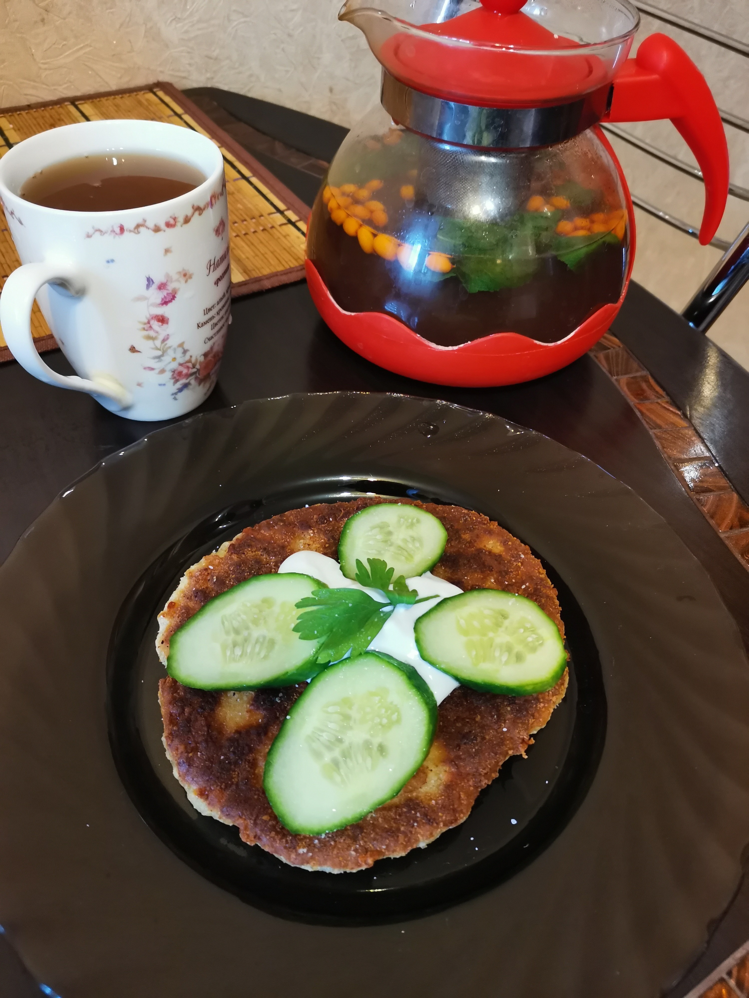 Сегодня готовила сырные лепешки. Рецепт во вложении, внезапно закончилась мука и обваливала уже в сухарях немного)) и чай с облепихой и мятой))
