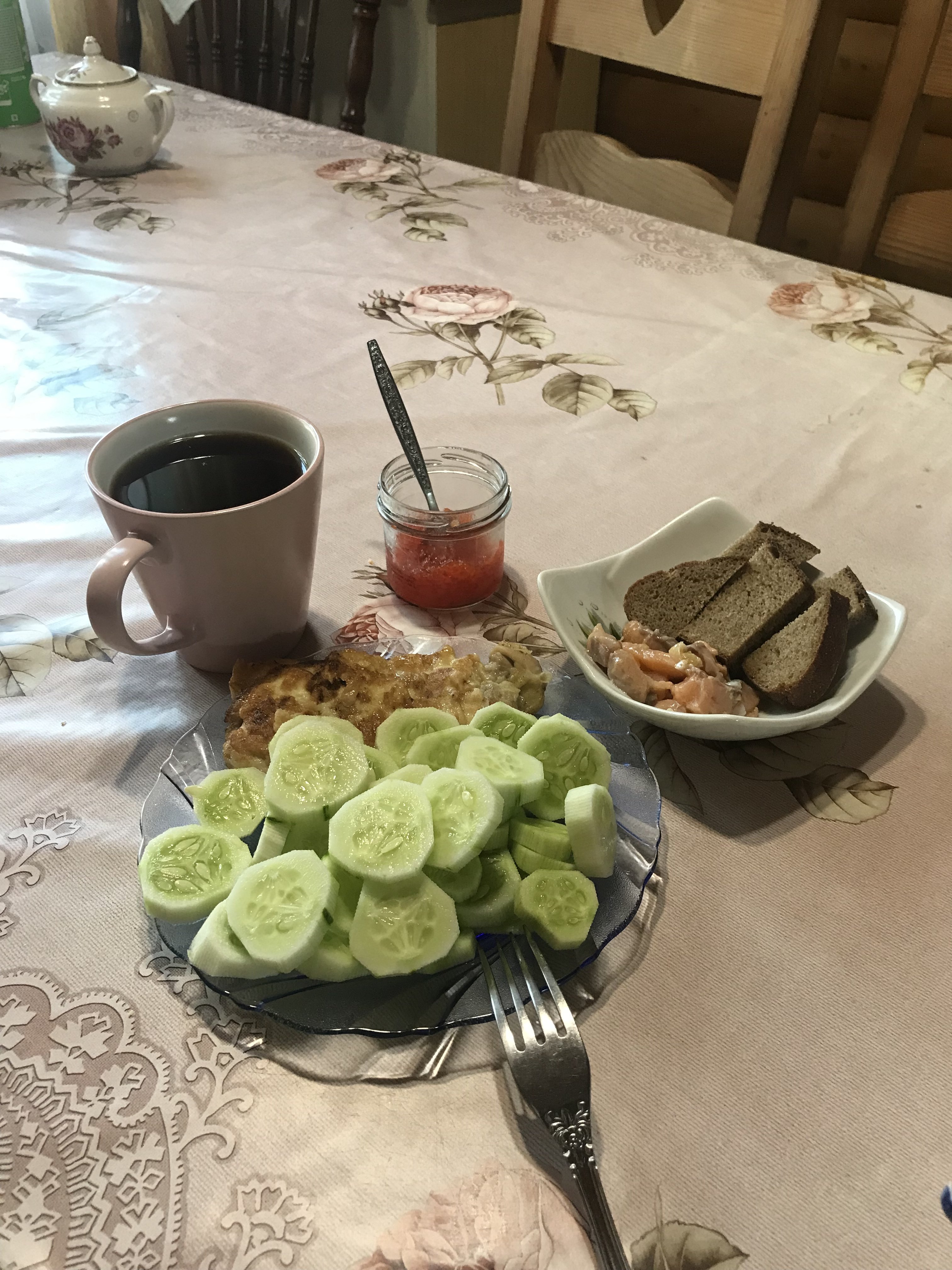Ну так тема про завтрак) Да, это был завтрак. Вот, да, именно так. Кабачковые одадьи вкусно, с минимум ингредиентов)