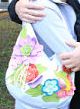 Под такую сумочку с цветаи надо однотонное платье из этого же набора цветов. Фуалетовое, салатовое, али даже белое.