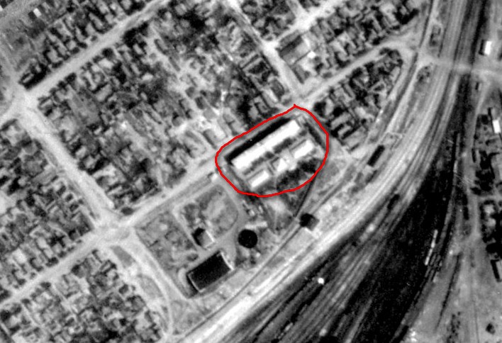 10-й школы, по крайней мере в нынешнем виде, не было тогда. Да и не видно то место за вокзалом. Тем более, что вокзал был "разлапистее" раньше. Сейчас он немного кастрирован по бокам. Скорее всего, это два дома по Пархоменко (если не ошибаюсь, до войны Донская раньше была). Один из них 62, жив и сейчас, а второй, точнее несколько зданий - во дворе этого дома. Они не сохранились. На том месте просто двор и сараи-погреба. Хотя какая-то мелкая послевоенная двухэтажка есть, но немного поодаль. Сам почти 30 лет назад немощному деду помогал добраться до неё. На всякий случай два скриншота прищепляю.