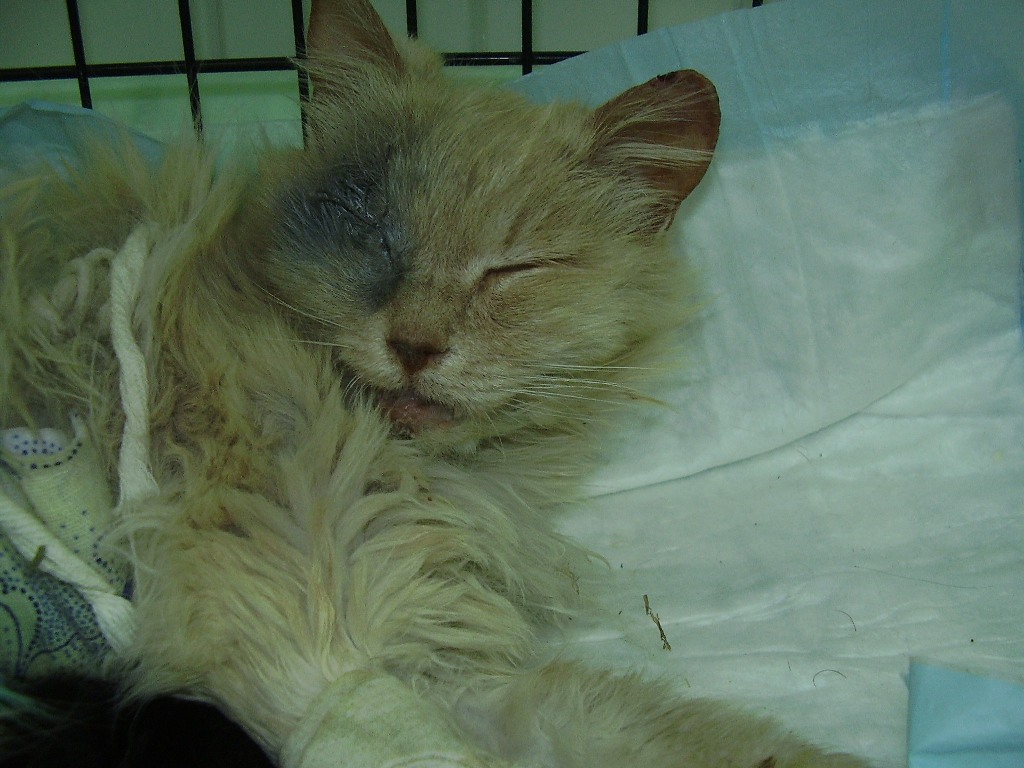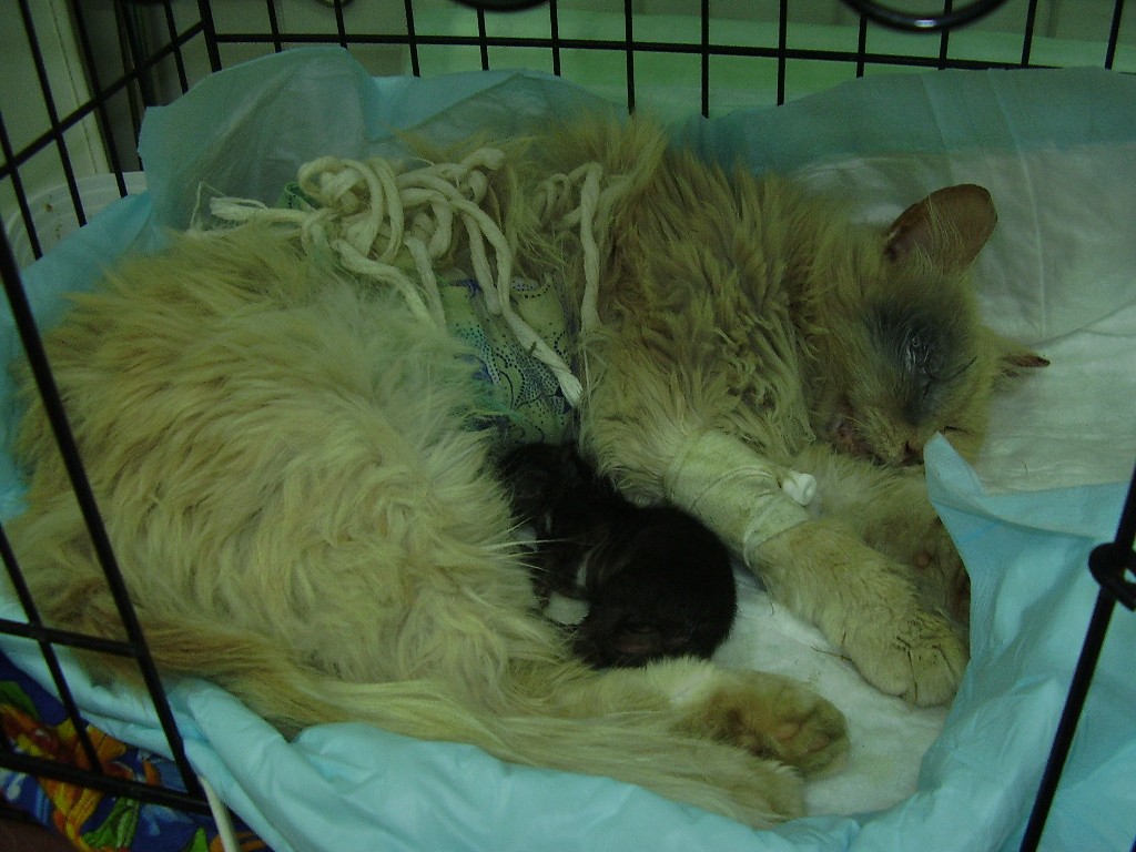 искалеченная беременная кошка