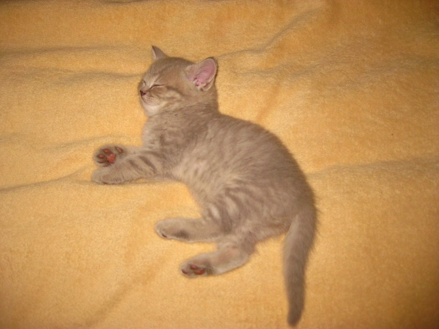 На этих фото ему 2 мес., в том-то и дело, что полоски у него заметны только на голове и лапках, на животе как двойной ряд «пуговиц», а сверху он совсем однотонный, может, на этих лучше видно.