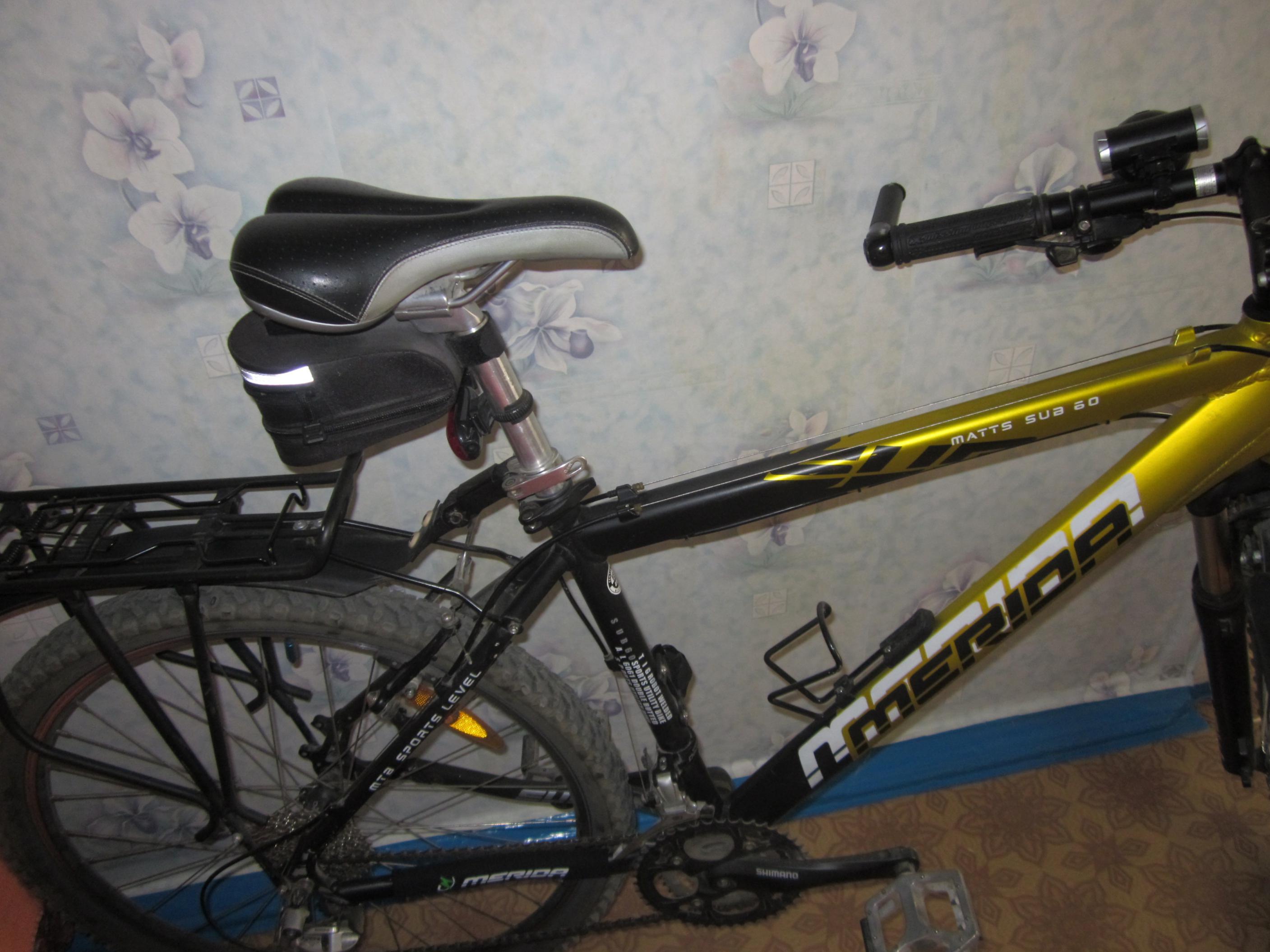 Продам велосипед на базе рамы Merida sub 60. Вся навеска ДЕОРЕ, переключатели передний и задний тоже. Состояние отличное. Тормоза вибрейки. Фото будет наверное завтра. В подарок крепление под бутылку, велокомп сигма (потому что прикреплен насмерть ) и наверное подседельная сумка. Подробности только на фото, на вопросы отвечу в рамках среднестатистического пользователя. А теперь самое главное! Продавать буду ориентировочно с 27 по 30 мая в связи с острой нехваткой денег. Успейте купить!!! Если нехватка денег будет не сильно острой с продажи моментально сниму, потому как это сейчас самое дорогое и близкое моему сердцу существо. Цена 13500. Рама 18 красивая черно-желтая, по сведениям из подполья, как у tRIDENT'a . Пока все. ЛС глупыми вопросами просьба не заваливать. И еще есть джерси мужская черная шоссейная, размер L. Объявление о продаже есть на авито. Она мне моловата, ввиду мужского покроя. Абсолютно новая, цена 750 руб.
