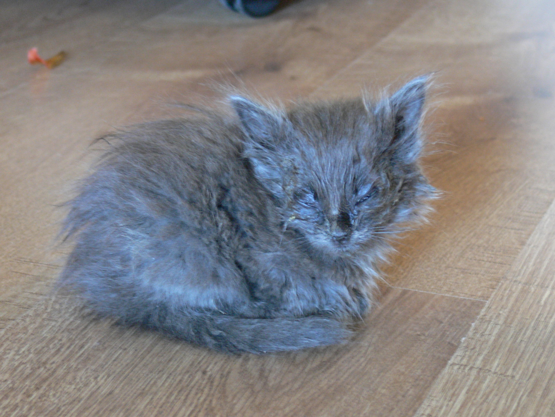 Сегодня по дороге на работу в Ворошиловском районе подобрала котенка (думаю, ему около месяца), просто потому что не смогла пройти мимо - глазки затекли и запеклись, почти не видит, кричит. Видимо, мама-кошка давно им не занималась. Слабенький, спит или просто сидит, хотя и пытается вырываться с рук. Отнесла в ближайший веткабинет, чтобы хоть чем-то помогли, но там девушка была занята на операции. У котенка, сказала, инфекция. Сейчас он у меня на работе в коробке, домой взять нет возможности - у мужа аллергия на них. Вечером думаю сносить к нашему ветеринару, чтобы поточнее понять, как его полечить, но держать у себя не смогу! Единственный вариант - полечить разок, помыть и отвезти обратно. Или в Покровитель. Максимум - пристрою на ночь, и то не факт. Прошу помощи. Фото будет позже. Котенок хорошенький, по-моему, девочка, дымчато-серого цвета.