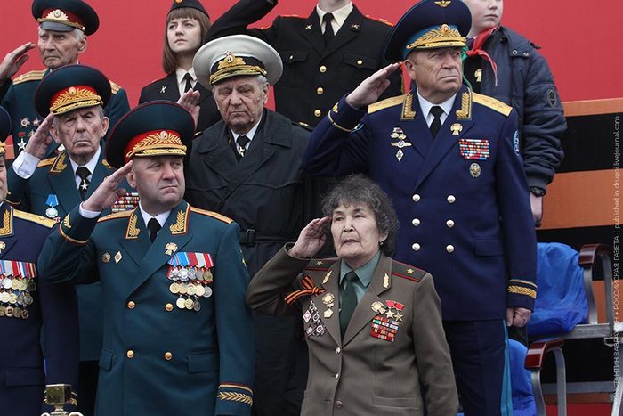 sp_r00t, Насчет помпезности и пафоса я ничего не скажу, тк никогда не участвовал в массовом праздновании. Поздравлял, пока было кого. И было видно - что для человека эти поздравления значат. Насчёт понимания смысла фразы "праздник со слезами на глазах". Хорошо или плохо 9 мая радоваться и смеяться, размахивая георгиевской ленточкой и всякими частями тела? Например, у СШП есть праздник дня независимости, когда все радуются и предаются патриотическим настроениям, понятно в России день независимости - это смешно, а вот 9 мая вполне становится всеобщим патриотическим праздником. Так что, наверное, правильно, что на замену ушедшим ветеранам ВОВ в парадах учавствуют более молодые. В конце концов, они страну восстанавливали, тоже подвиг. Касаемо бабки - инфы маловато, кто это и зачем нарядилась генералом.