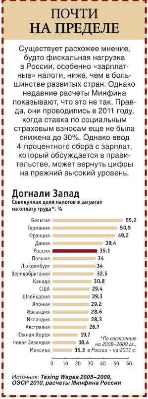 Давно предполагал, что нам вешают лапшу на уши по поводу беспрецедентно низких налогов в РФ. 13% это то ты видишь а все остальное налог от тебя скрытый и платит его работодатель. Прохоров предлагал как раз сделать так чтобы налоги платил каждый сам за себя. И повышал при этом свою финансовую культуру: пытался получать налоговые вычеты, применял легальные схемы минимизации налогов и пр. Вот теперь нашел подтверждение своим мыслям. См. вырезку из журнала РБК. У нас налоги достаточно высоки и превышают даже налоги многих развитых стран.