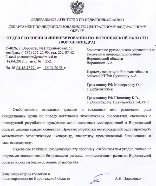 Пока не известно кто победит в конкурсе на разработку месторождений, не в этом суть. Да и сейчас похоже конкурс хотят заменить аукционом, что позволит разработчику месторождения избежать социальных обязательств перед регионом. Производство это экологически грязное, при нынешнем государстве экологический контроль наладить не удастся. Аргументы, что раз за углом убивают кого-то, то и тут не надо никого спасать - обычная манипуляция, организовывайте протест против завода удобрений. При том этот завод строится в засушливой зоне, на неплодородных землях, а добыча никеля планируется на черноземе, рядом с природным парком, на самой чистой реке в Европе.