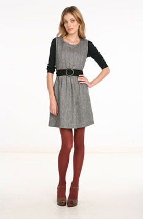 Снежанна, самое главное: сарафанчик Вам велик в груди, если собираетесь его носить- надо подгонять под Ваш размер ОБЯЗАТЕЛЬНО, а то теряется всякая изюминка сарафанчика. Кашемировый свитерочек-"водолазка" + Колготки ПЛОТНЫЕ: тёмно-серые или черные или бургундия; + ТУФЕЛЬКИ: