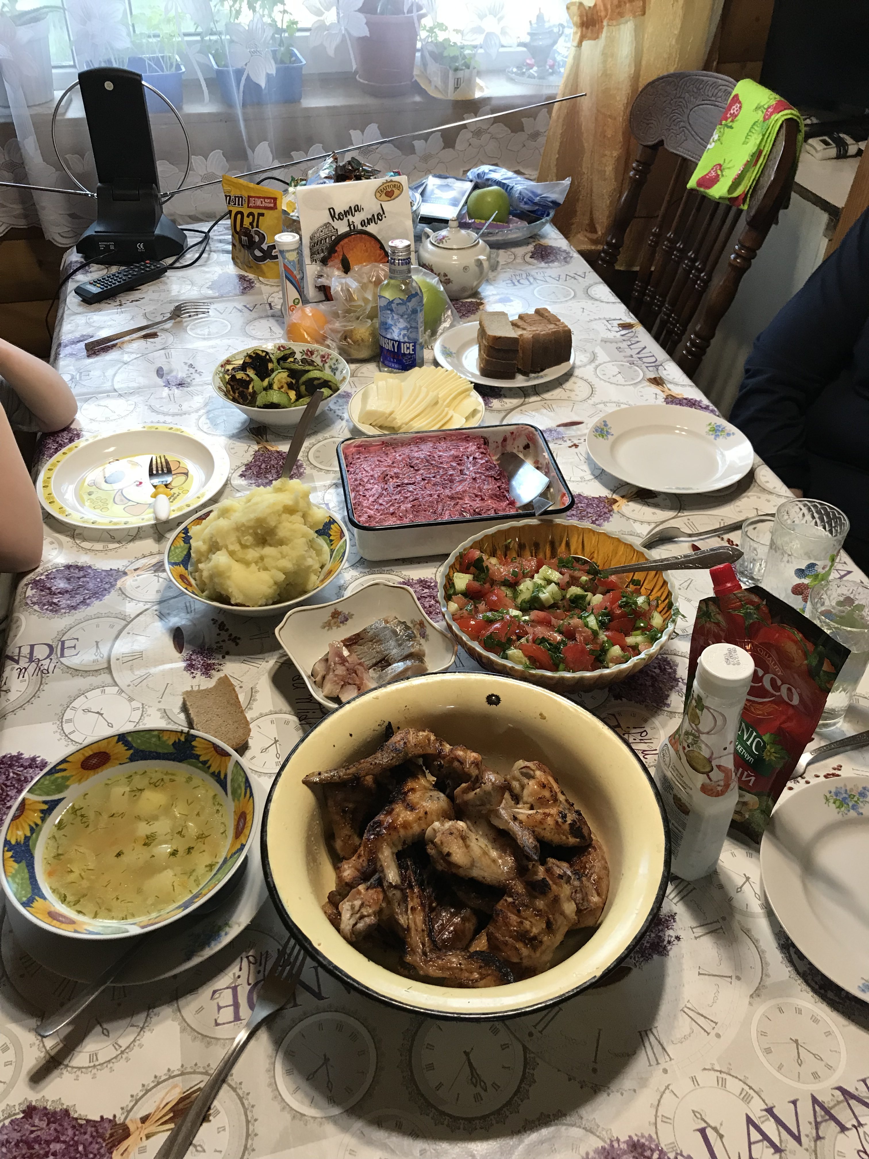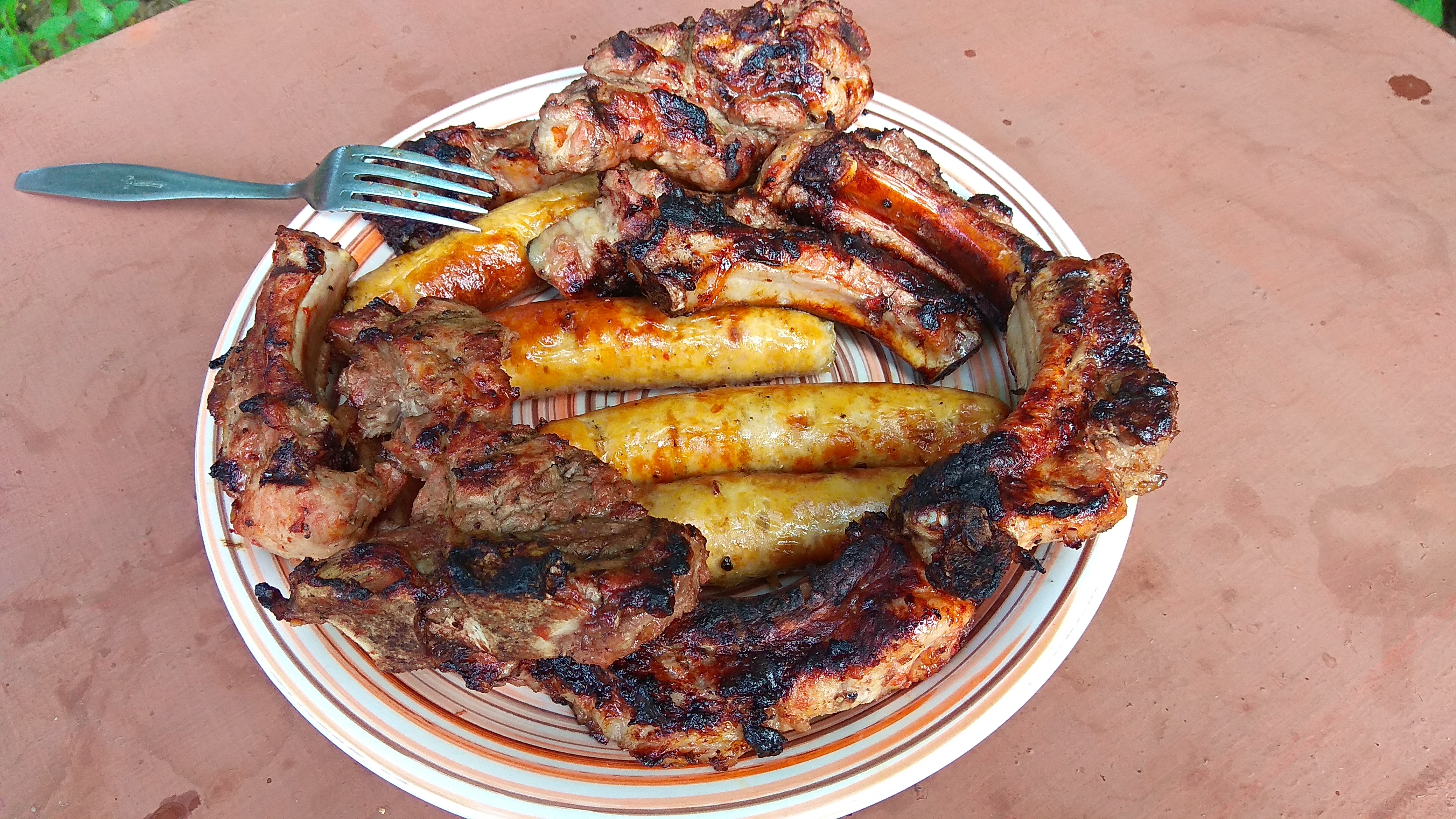 Есть у нас гипермаркет, Globus, берём их собственного производства. А также в магазинах Мираторг, Куриный дом. Разные всякие, свиные, куриные, с разными добавками. На и мясо свинина, курица собственного маринования никто не отменял) И овощи.