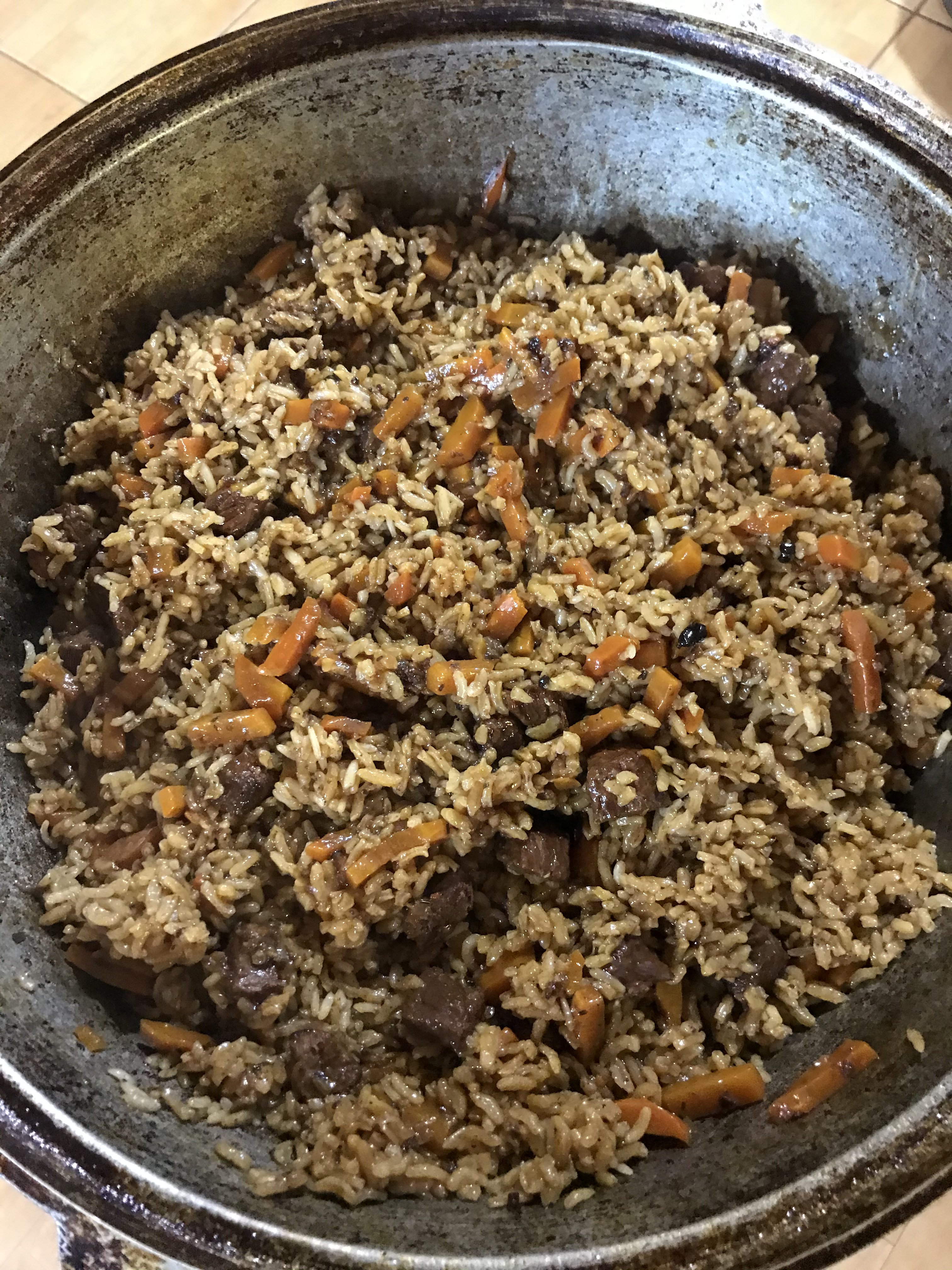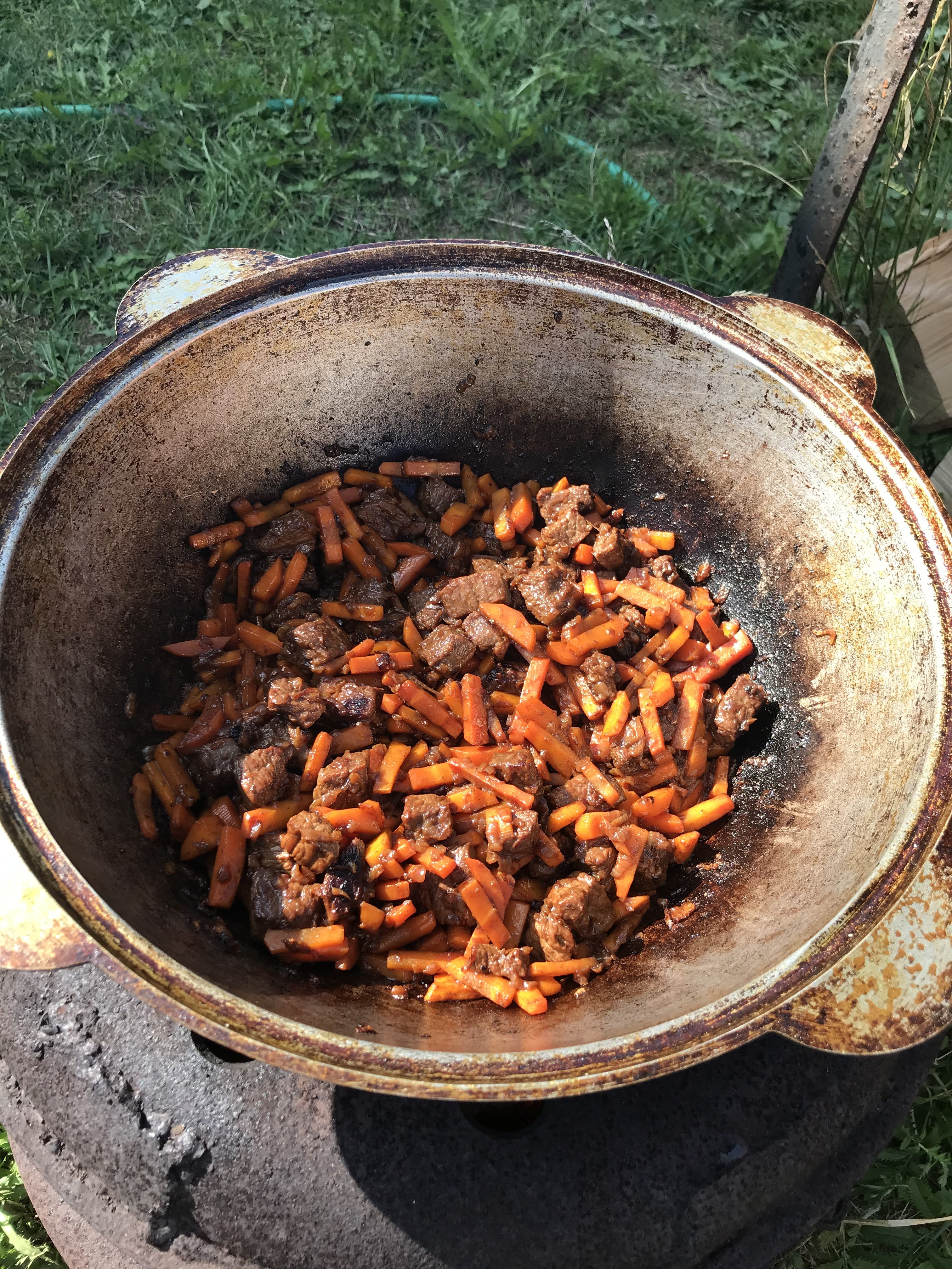 Зачем спрашивать очевидные вещи)) Когда мясо закинула, дрова лишние не убрала сразу. Но он всё равно вкусный был. Готовила с телятиной и рис девзира.