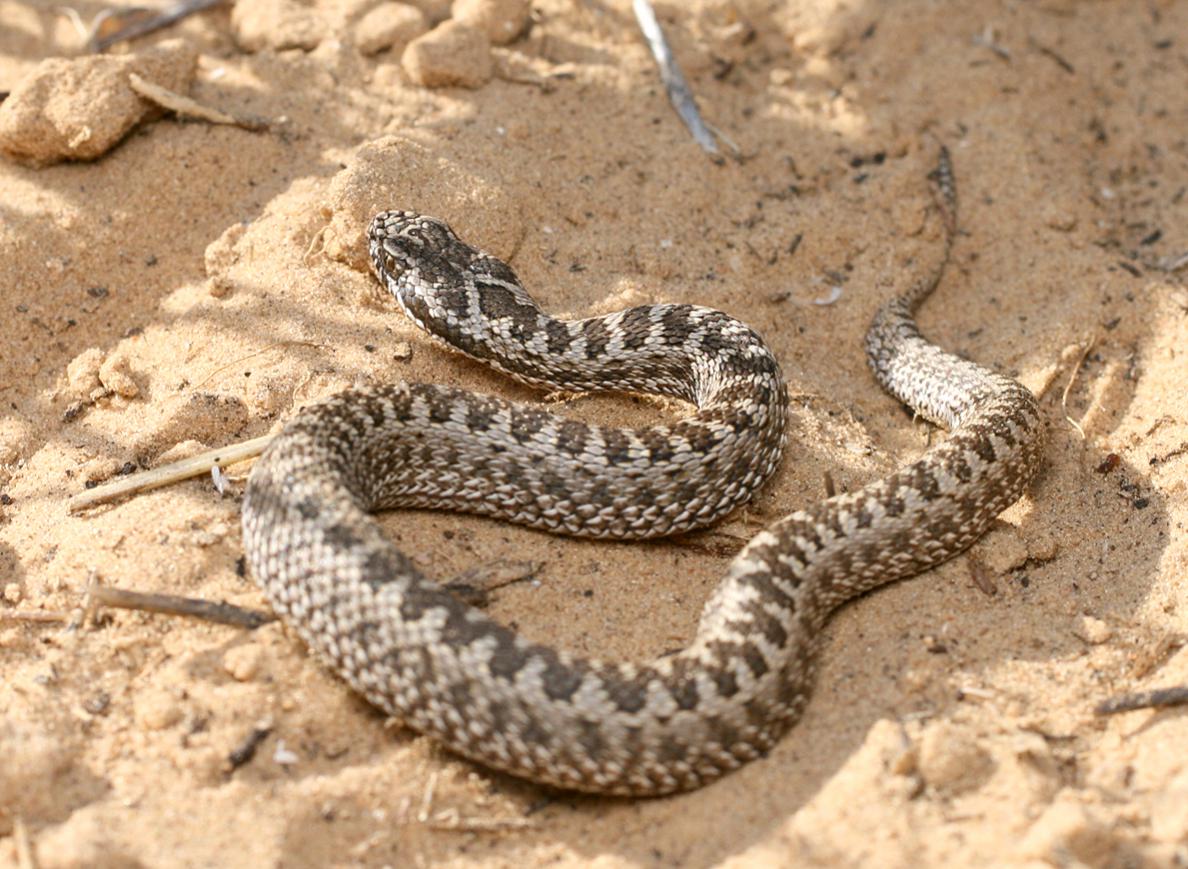 На Сарпинском гадюки практически исключены, особенно в восточной части. Как заметил Lyosha, там встречаются два вида ужей и узорчатый полоз, теоретически может быть желтобрюхий полоз.