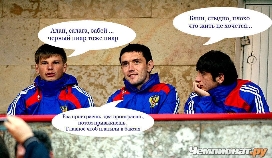 Litron, мне кажется никто не обвиняет дзагоева и малафеева, один молод, второй плохой игры не показывал. Речь про всех остальных довольно халеных и возростных футболистов, тренерский штаб и РФС