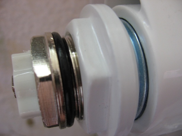 А как правильно собрать и подключить радиатор? Слесари "немного недопоняли" объяснения жены, и вместо врезки одного крана (термоголовки) перед батареей срезали батарею полностью и поставили два шаровых крана. Правда, есть плюс: теперь у меня новая биметаллическая батарея . Ее надо собрать и подключить. В установочном комплекте 4 футорки 1"х3/4" из оцинкованной стали с прокладками из силиконовой резины, пробка для футорки с прокладкой (как написано - самоуплотняющаяся), воздухоотводчик (кран маевского) с прокладкой и тоже написано, что самоуплотняющийся (кстати, это как? )). Со стороны стояка стоят краны на которых американка (с резиновой прокладкой) В общем, встал вопрос: нужно ли уплотнять резьбовые соединения между: 1) футоркой и радиатором или достаточно силиконовой прокладки из комплекта 2) футоркой и воздухоотводчиком 3) футоркой и американкой (здесь, наверное, точно нужно, т.к. никаких уплотнителей и прокладок нет) 4) американкой и краном И если нужно, то чем? Футорка с воздухоотводчиком Футорка с американкой