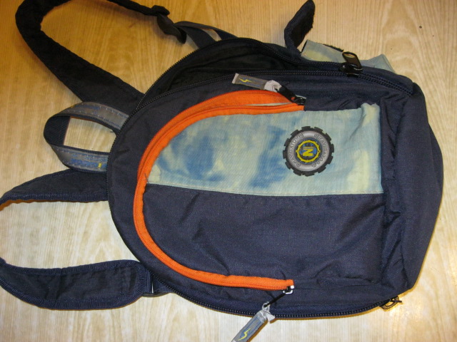 Из дефектов - малый рюкзак пошел цветными пятнами после стирки и имеет надрыв на ручке. Другой - разошелся шов клапана, что закрывает место пришива лямок и ручки, и днище немного замурзанное.