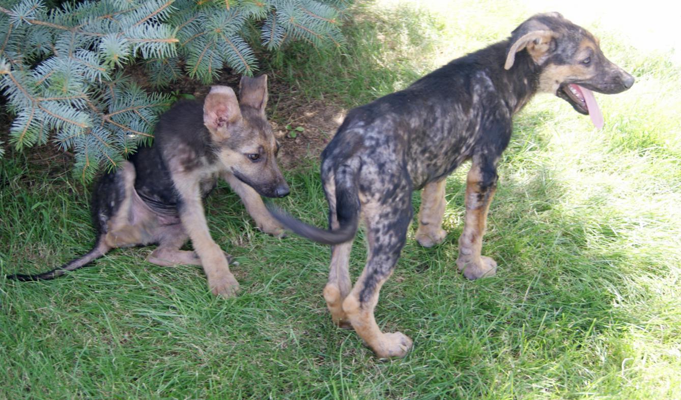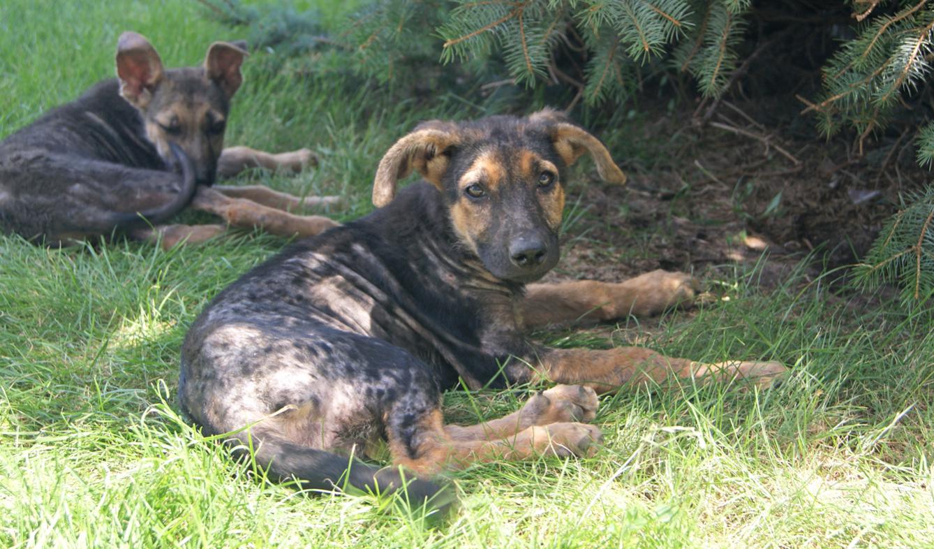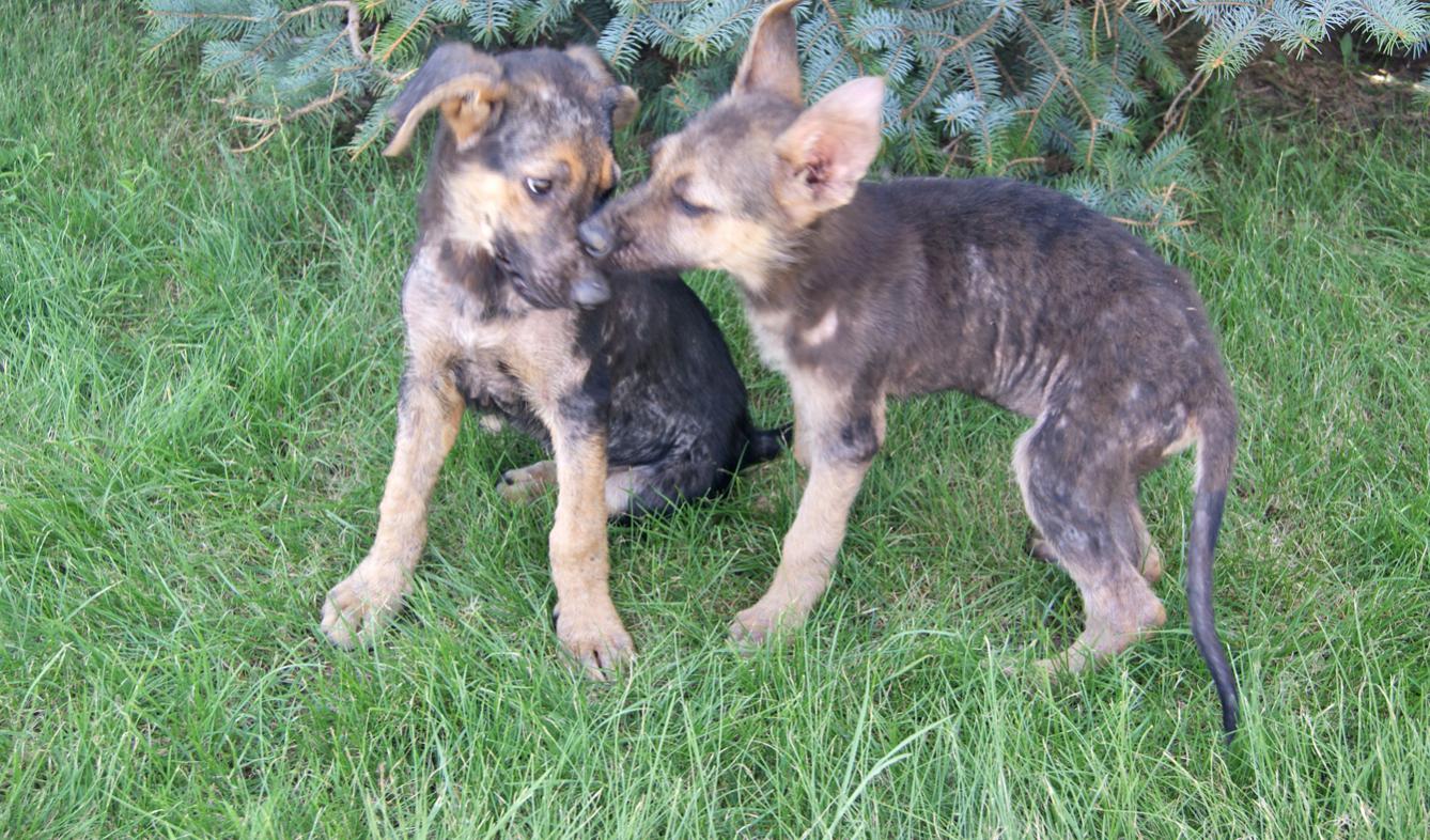 Истощенные щенки, метисы овчарки