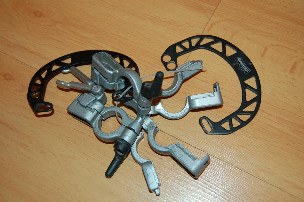 Заберу Вилка алюминиевая, крепления под вибрейки, шток 21,5 см и Какието приблуды от магуровских тормозов за 600р суммарно.
