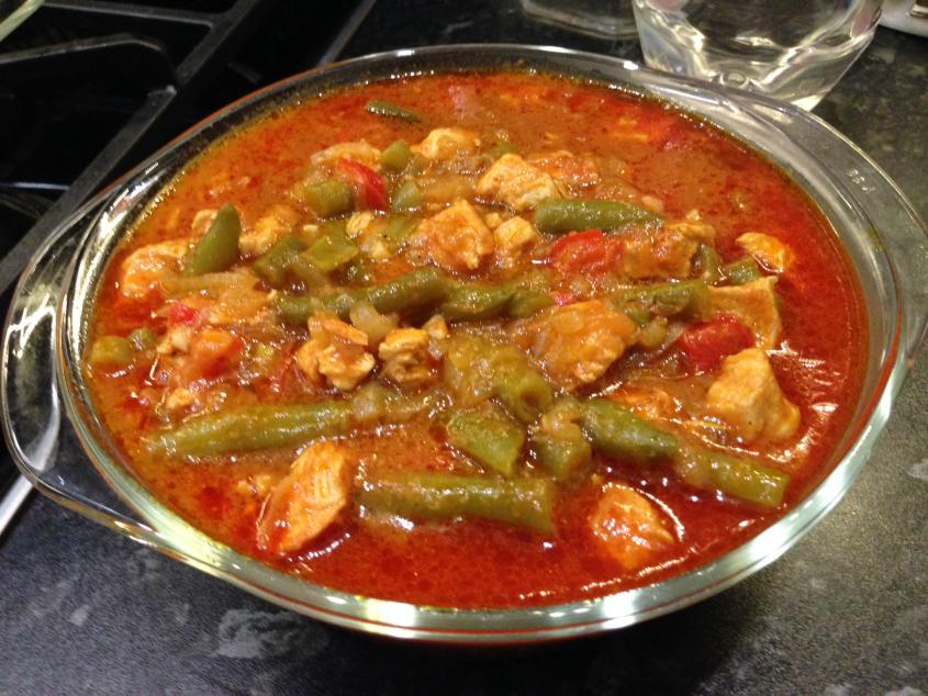 Чахохбили с фасолью (рецепт из книги рецептов к моей мультиварке) Куриное филе - 300 гр. Фасоль стручковая - 200 гр. Болгарский перец - 100гр. Лук репчатый - 100 гр. Растительное масло - 50 гр. Вода - 200 мл. Соль, специи Перец и лук нашинковать соломкой 0,5*3 см. Филе курицы нарезать кубиками 0,5*1 см. Всё выложить в чашу мультиварки, добавить соль и специи, залить водой, перемешать. Программа - Тушение. Вид продукта - Мясо. Время приготовления - 1 час. Я всё нарезала как мне нравится.