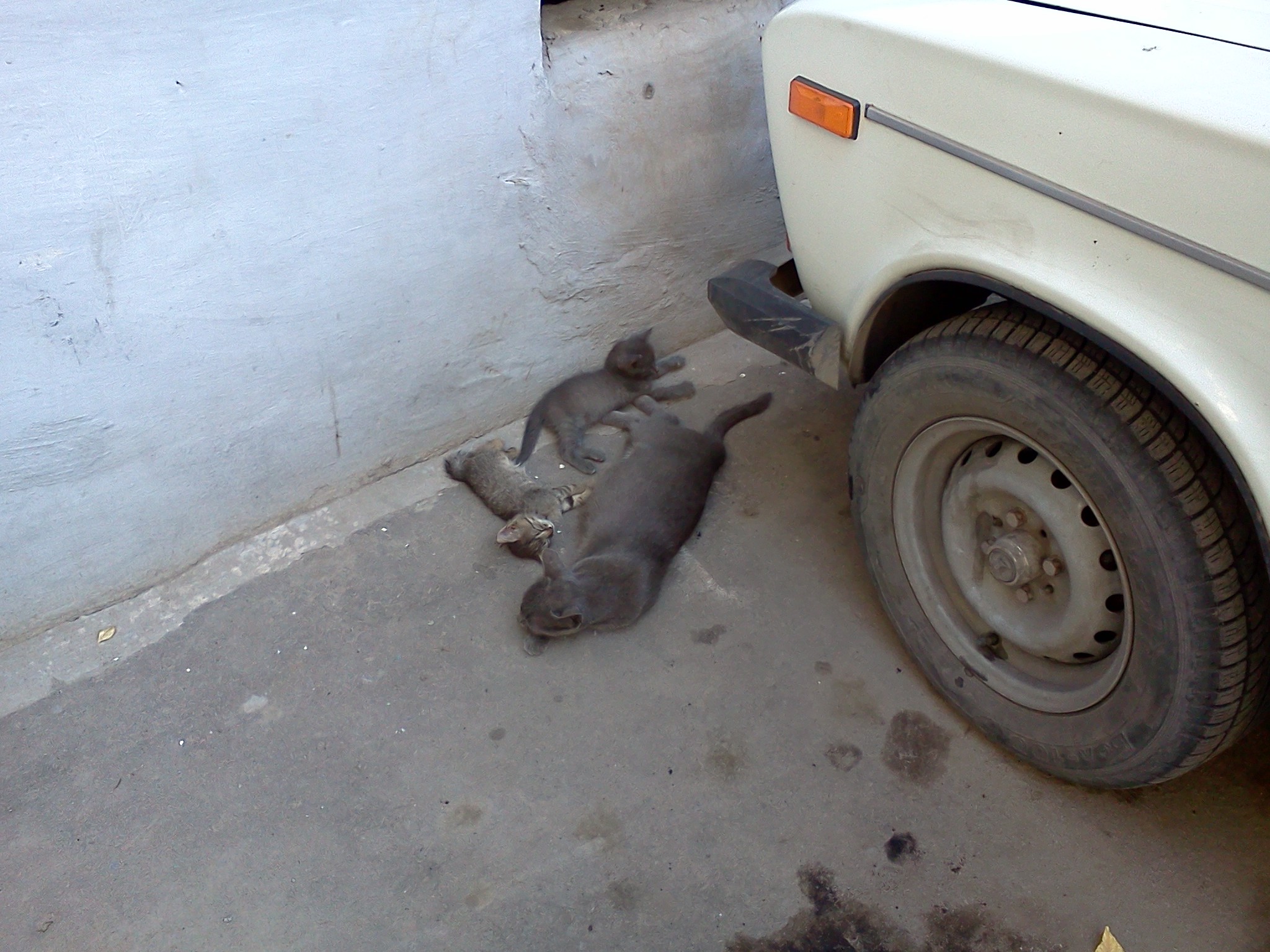 У нас во дворе котята жили. Днем, пережидая жару, валялись под машинами. Я приехала, видела что котята пошли под мою машину. Через час выхожу - нету, ну думаю уползли под другую. Приехала на дачу. Преследует мяуканье. Не пойму откуда... Всю дачу обошла... Нашла котят под капотом!!! Как они туда залезли... Как не померли от горячего двигателя.... Потусили они у нас там выходные и отвезла обратно во двор. Живых и здоровых.