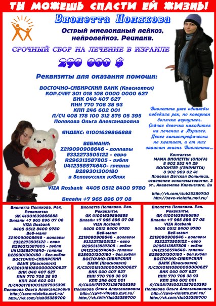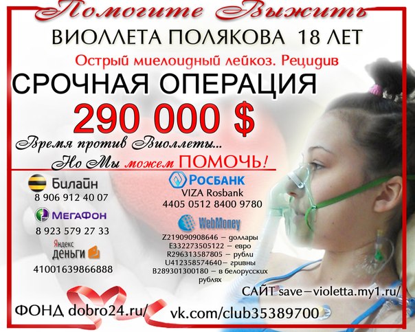 Спасите девочку с Таймыра! Острый миелоидный лейкоз. Нейролекоз. Рецидив.