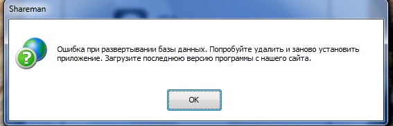После переустановки Винды. Категорически отказывается устанавливаться Shareman. Вылазит вот такое окошко: